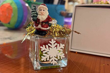 Unsere Weihnachtsbastelwerkstatt in der Remida sucht Weihnachtskugeln, kleine und große Dekofiguren, Schleifen und Kerzen.
