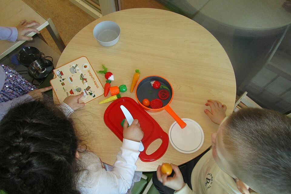 Im Puppenraum herrschte lebendiges Treiben: Hier wurden Alltagsszenen nachgespielt, vom Mutter-Vater-Kind-Spiel bis zum ausgiebigen Grillfest. Gleichzeitig wurde in der Kinderküche geschnippelt, gerührt und gekocht – ganz nach dem Motto: Aus kleinen Händen entstehen große Ideen. Es ist immer wieder faszinierend zu sehen, wie die Kinder im Spiel ihre Umwelt erkunden und verstehen.
