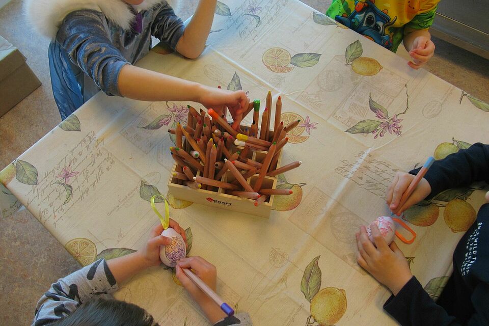 Im Bauraum erwachte unsere Kita in Miniaturform zum Leben. Mit voller Kreativität und erstaunlicher Geduld setzten die Kinder ihre Vorstellungen in Bauwerke um – ein echter Beweis, dass Forschergeist und Fantasie Hand in Hand gehen. Und weil Ostern nicht mehr weit ist, wurde im Kreativraum eifrig gebastelt: Ostereier wurden bemalt und als bunte Dekoration in den Räumen und auf dem Hof verteilt. So erblühen selbst die noch kahlen Sträucher in fröhlichen Farben.