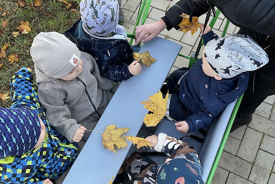 Ein ganz besonderes Highlight war unser bunter Herbstspaziergang. Blätter flogen fröhlich durch die Luft, wir rochen, fühlten und bestaunten die Natur und ihre Farbenpracht. So erleben Kinder den Herbst nicht nur, sie tauchen direkt mitten hinein – mit Herz, Händen und einer großen Portion Forschergeist.