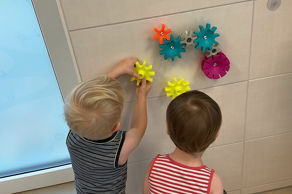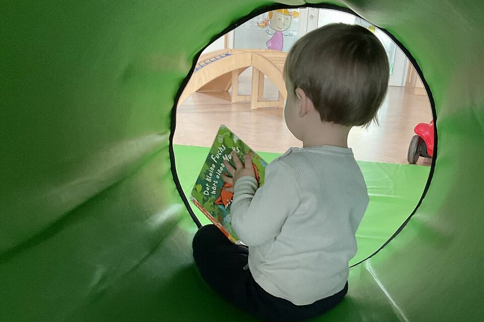 Nach all dem Tüfteln hieß es: Ab ins kühle Nass! Im Wasserspielbereich wurde geschüttet, gespritzt und geplanscht, bis alle lachend und mit glänzenden Augen durchnässt waren. Zwischendurch tankten wir kleine Ruhepausen – kuschelige Ecken, Tunnel oder der Schoß einer Erzieherin wurden zu stillen Inseln voller Bilderbücher und Geschichten.