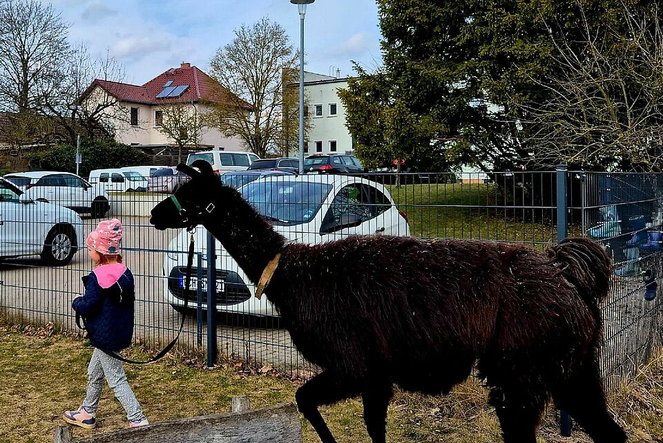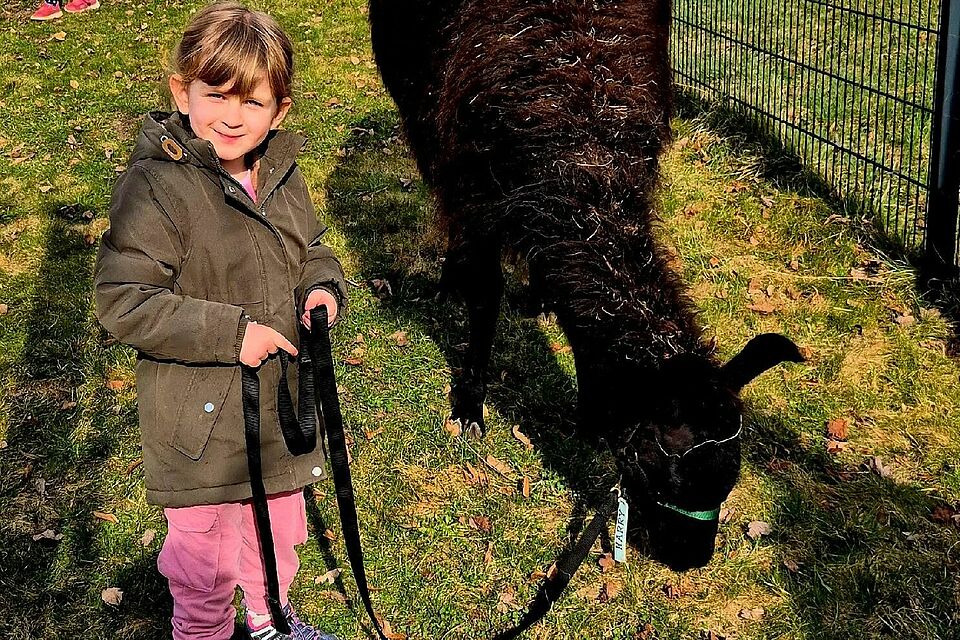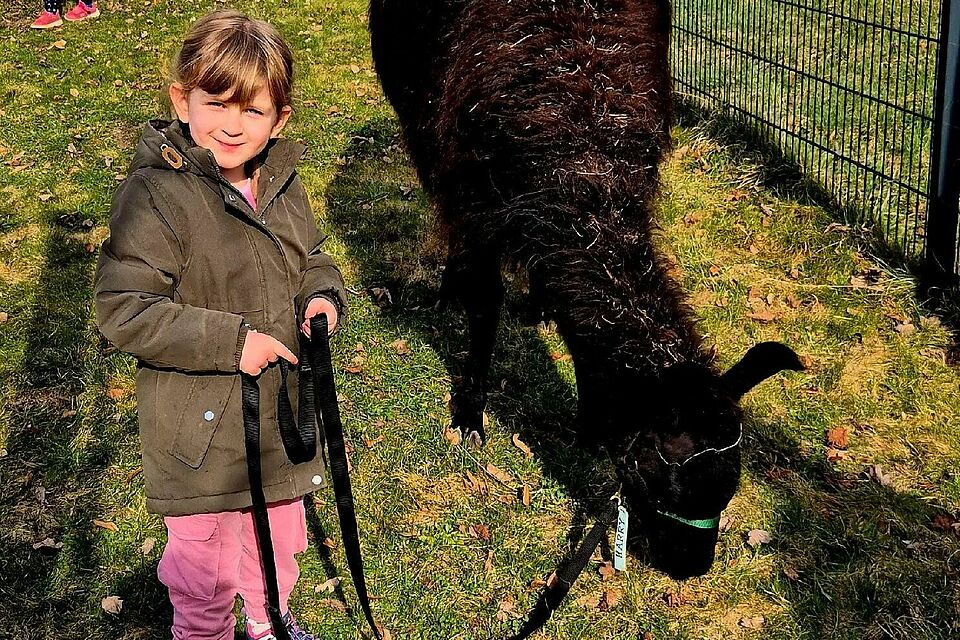 Unter fachkundiger Anleitung durften die Kinder die Lamas füttern, streicheln und sogar ein Stück führen. Dabei ging es nicht nur um das Erlebnis selbst, sondern vor allem um den respektvollen Umgang mit den Tieren.