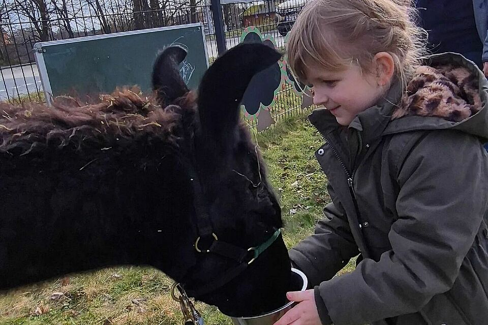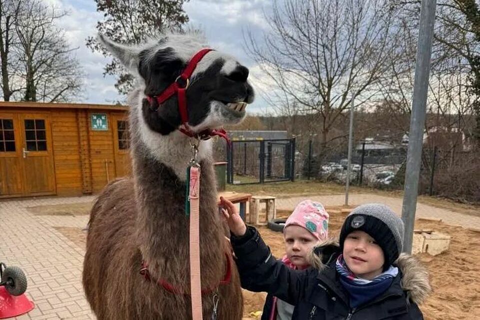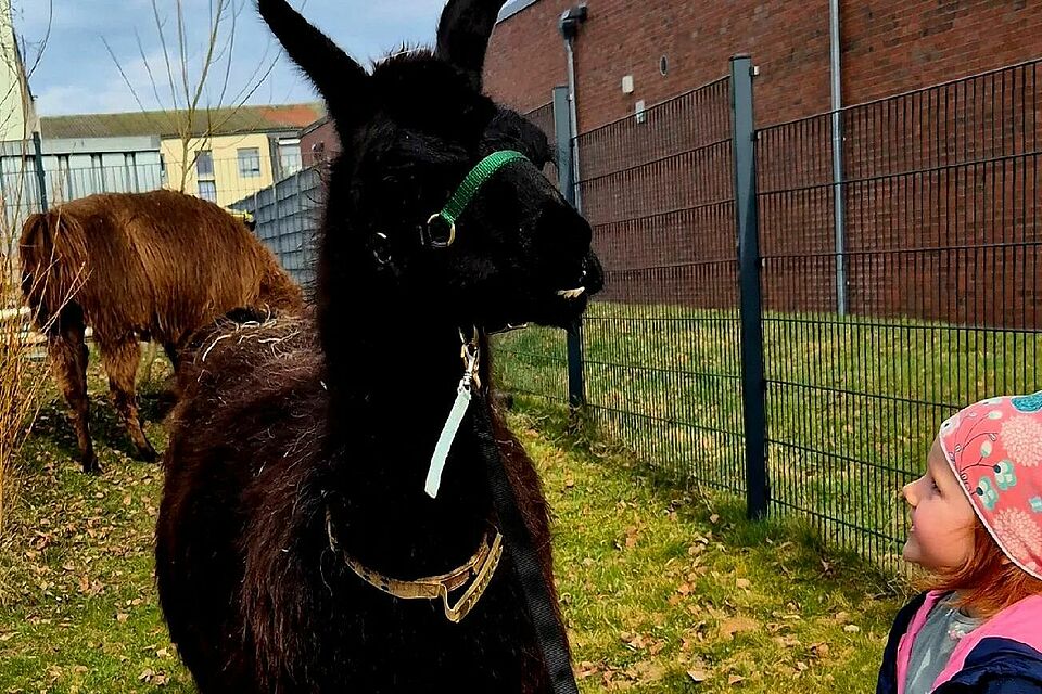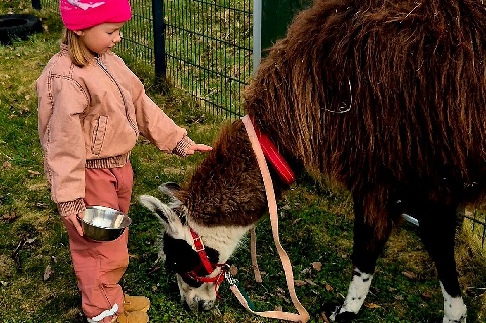 Im Rahmen einer tiergestützten pädagogischen Begegnung konnten die Kinder die Tiere ganz nah erleben. In ruhiger Atmosphäre hatten sie die Möglichkeit, die Lamas kennenzulernen, sie zu beobachten und vorsichtig Kontakt aufzunehmen.