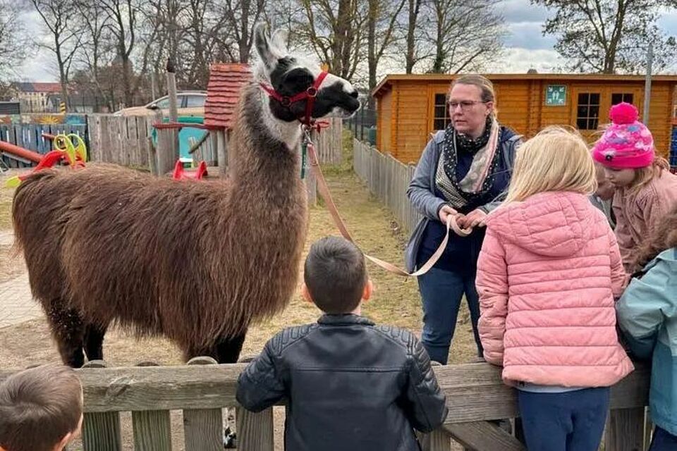 In der Kita “Sternberger Kinnings” gab es besonderen Besuch: Die beiden Lamas Harry und Tano kamen gemeinsam mit Kim Pecksen in die Kita und sorgten sofort für große Neugier bei den Kindern.