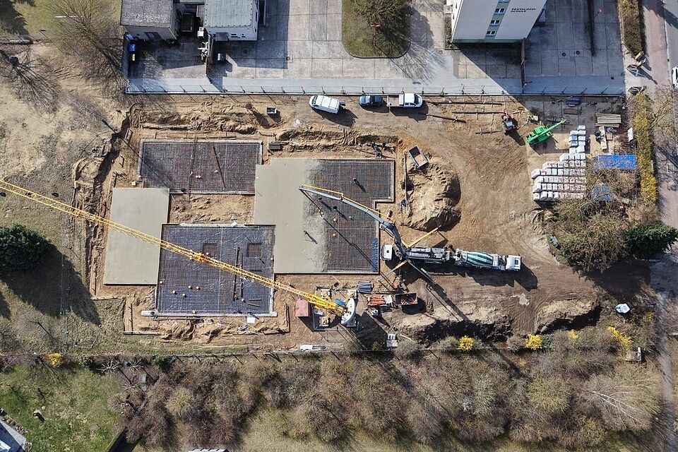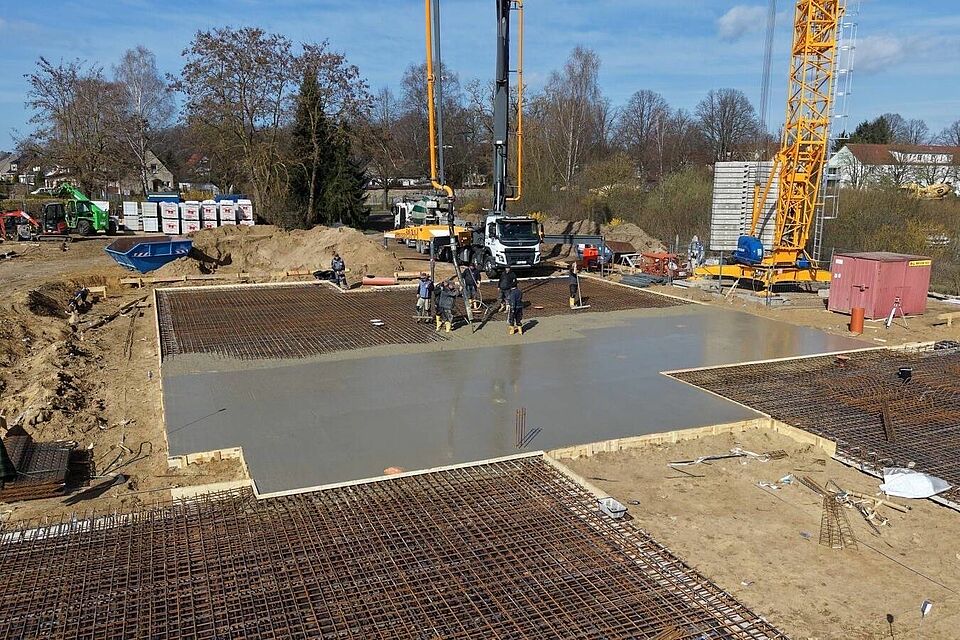 Mit dem Gießen der Bodenplatte ist ein bedeutender Bauabschnitt abgeschlossen. Dieser Schritt bildet die Grundlage für alles, was folgt – und macht das zukünftige Hospiz nun erstmals auch räumlich greifbar.