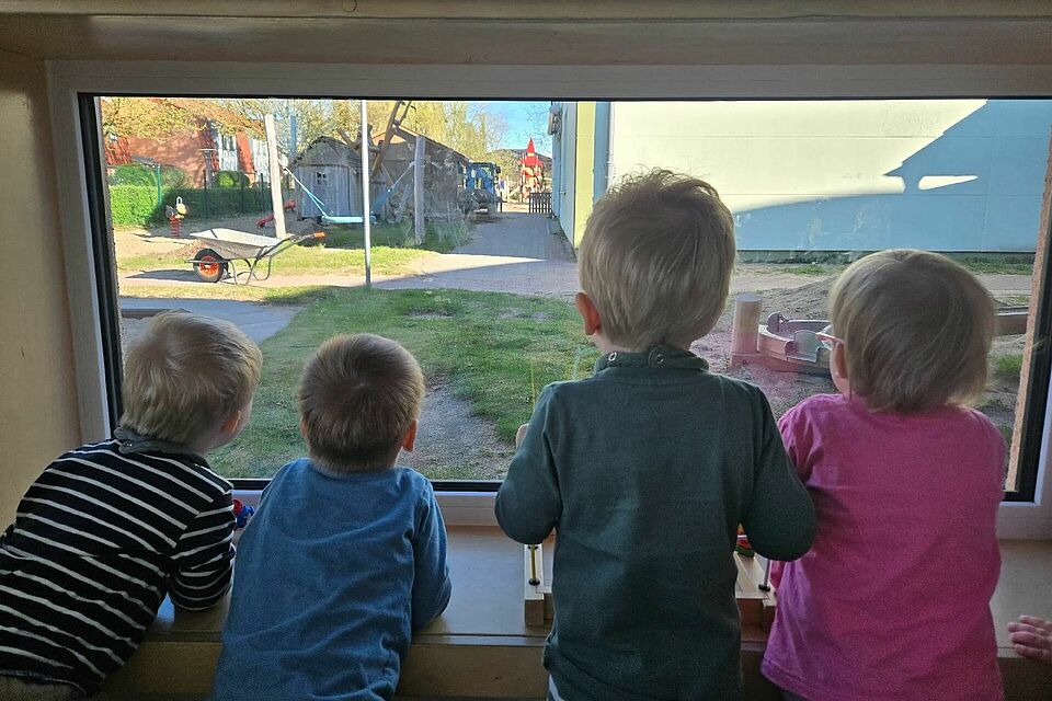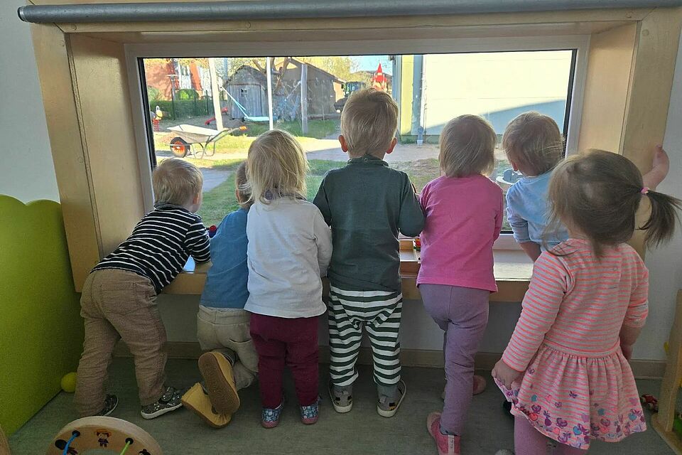 Mit großen Augen und dicht gedrängt stehen die Kinder der Kita "Neddelrad Spatzen" in Banzkow am Fenster, denn draußen passiert etwas, das sofort ihre Aufmerksamkeit fesselt. Der Bagger arbeitet unermüdlich, verteilt Erde und formt das Gelände Stück für Stück neu. Für die Kinder wird die Baustelle zu einem faszinierenden Schauspiel, das sie staunen lässt und viele Fragen weckt. Die Geräusche, die Bewegungen und das geschäftige Treiben machen den Moment zu einem besonderen Erlebnis in unserem Kita-Alltag.