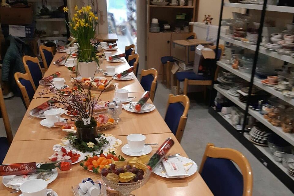 Viele engagierte Frauen unterstützen unseren Charity Shop mit großer Leidenschaft. Sie nehmen Spenden entgegen, sortieren Kleidung und Haushaltswaren, beraten Kund:innen und sorgen dafür, dass sich alle im Shop willkommen fühlen. Dieses ehrenamtliche Engagement trägt unsere Arbeit und macht den Charity Shop zu einem besonderen Ort der Begegnung.