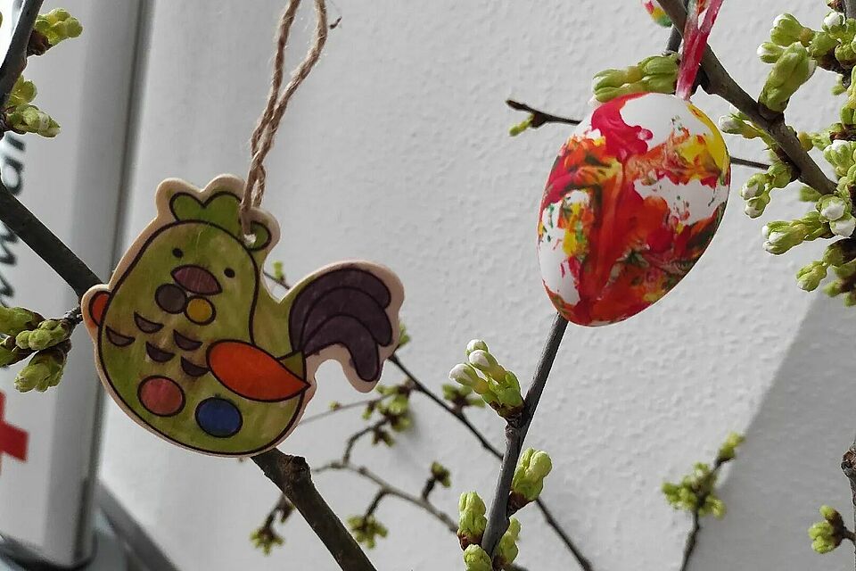 Gemeinsam wurde unser Osterstrauch zu einem echten Hingucker. Mit viel Sorgfalt, eigenen Ideen und viel Kreativität haben die Kinder die Eier ausgewählt und aufgehängt. Dabei war zu spüren, wie aufmerksam sie bei der Sache waren – jedes Kind hat seinen eigenen Beitrag eingebracht und damit das Gesamtbild mitgestaltet.