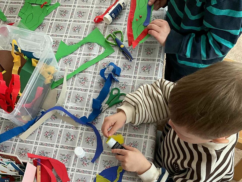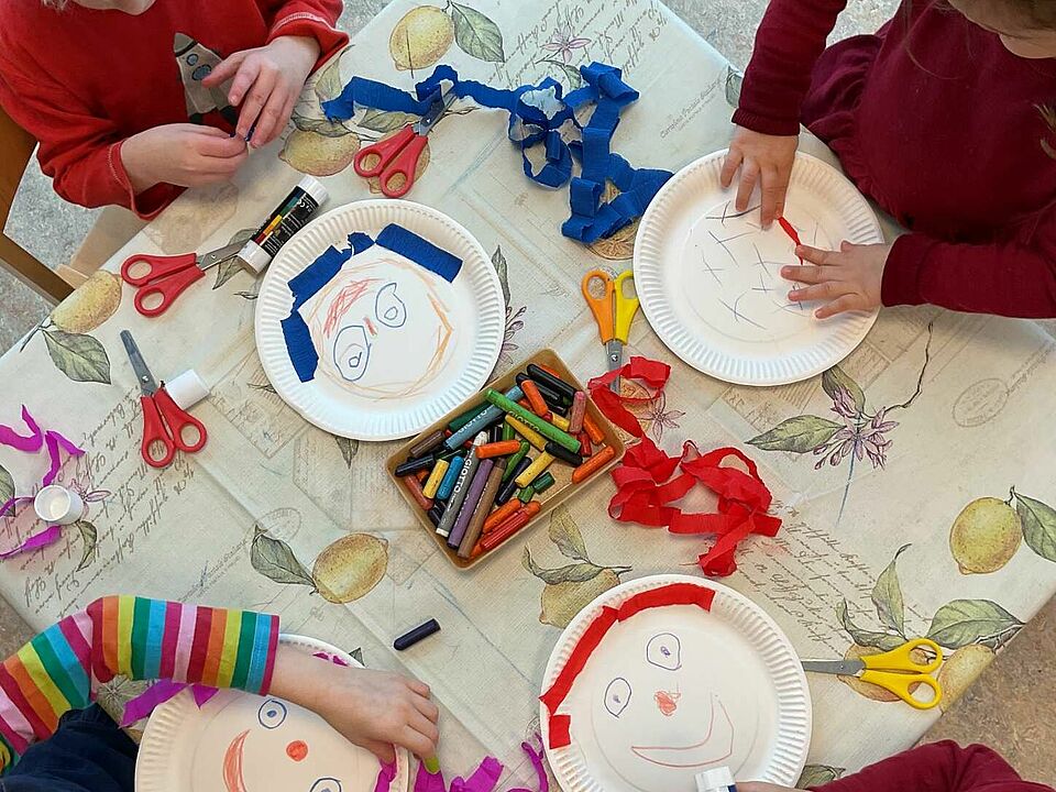 Während draußen noch die Winterkälte wehte, wurde drinnen schon kunterbunt fürs Faschingsfest gebastelt. Mit Stoffresten, Papier und viel Elan entstanden fantasievolle Masken, fröhliche Clowns und lange Wimpelketten. Ganz nebenbei stärkten die Kinder dabei ihre Ausdauer, ihr gestalterisches Selbstvertrauen und ihre Fähigkeit, sich in gemeinsamen Prozessen einzubringen. Auch sprachlich war einiges los: Beim täglichen Morgenkreis tauchten wir spielerisch in die Welt der Buchstaben, Formen und Mengen ein – ein wichtiger Baustein für mathematisches Denken und Konzentration. Ein besonderes Erlebnis war der Besuch der Stadtbibliothek, der einmal mehr zeigte: Bücher sind nicht nur Fenster in andere Welten, sondern auch Türöffner für Sprachentwicklung, Medienkompetenz und gemeinsames Staunen.
