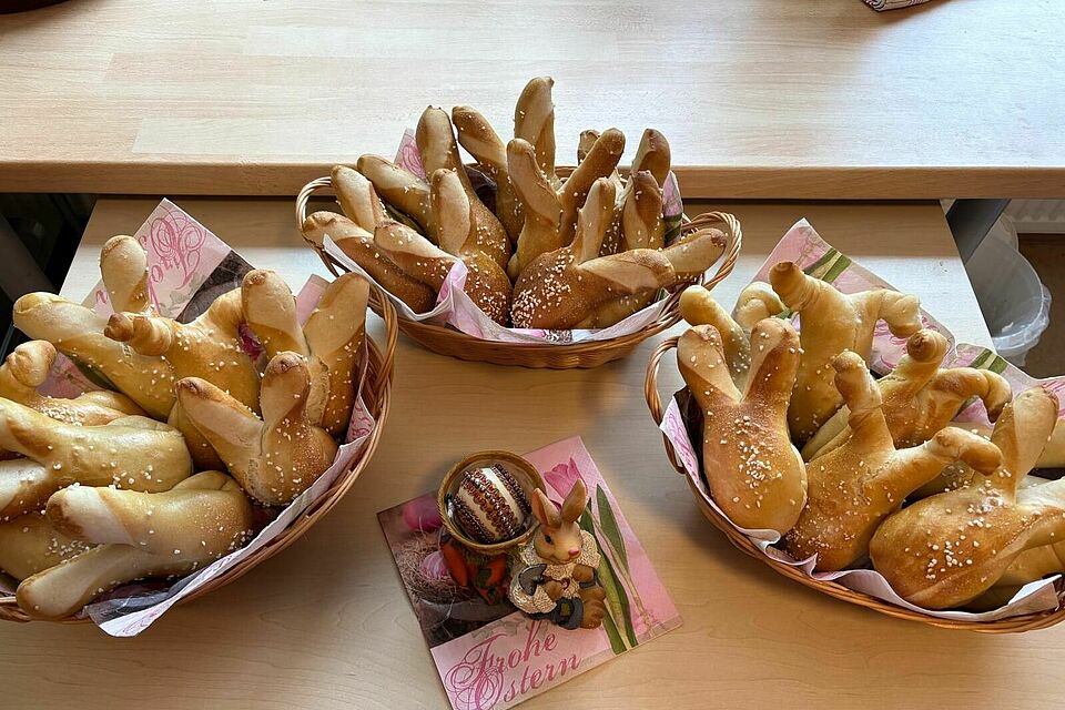 Im Laufe des Tages entwickelte sich ein vielseitiges Programm: Wunschessen, selbstgebackener Kuchen und liebevoll gestaltete Osterhasen aus Laugengebäck sorgten für Genuss und Gespräche. Spielerische Momente wie „Oster-Pong“ brachten Leichtigkeit in die Runde.