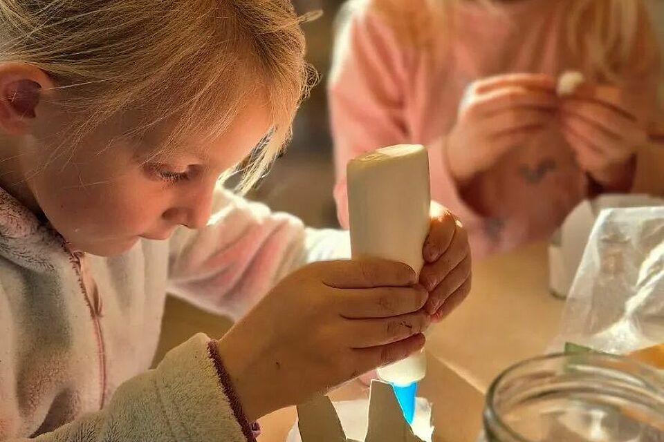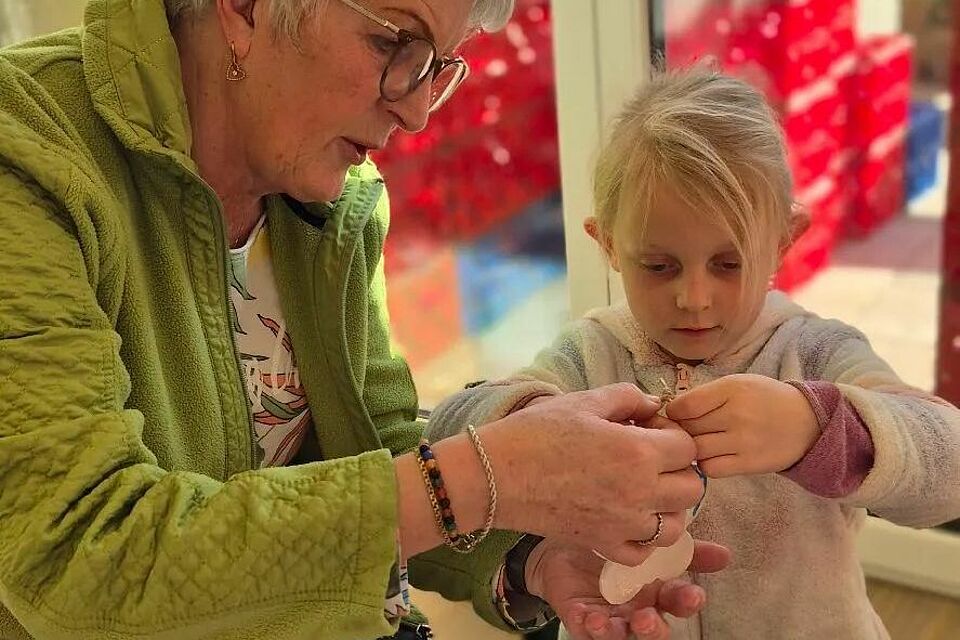 Cindy, unser Keramikmädchen, bringt die weißen Anhänger mit – und was dann passiert, ist pures Chaos auf den Tischen. Aber ein fröhliches Chaos! Kleine Hände tauchen in Farbe, streichen, tupfen, experimentieren. Jedes Stück wird ein Unikat, jedes Kind ein Künstler. Manchmal landet Farbe auch auf der Nase, und wir staunen, wie konzentriert sie dabei sind und trotzdem über jeden Farbklecks lachen können.