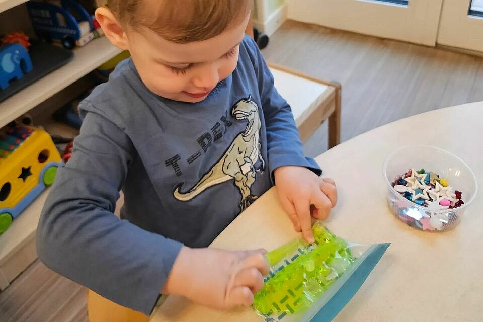 Mit strahlenden Augen, neugierigen Fingern und einer ordentlichen Portion Kreativität entstanden kunterbunte Sensorik-Beutel, die zum Drücken, Schütteln, Staunen und natürlich zum fröhlichen Spielen einladen.
