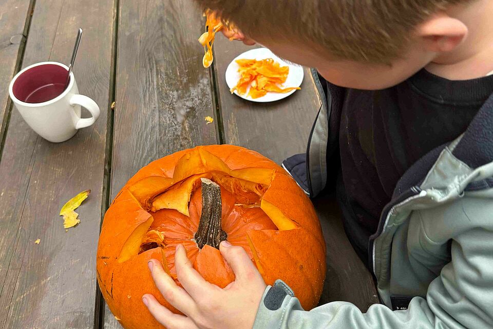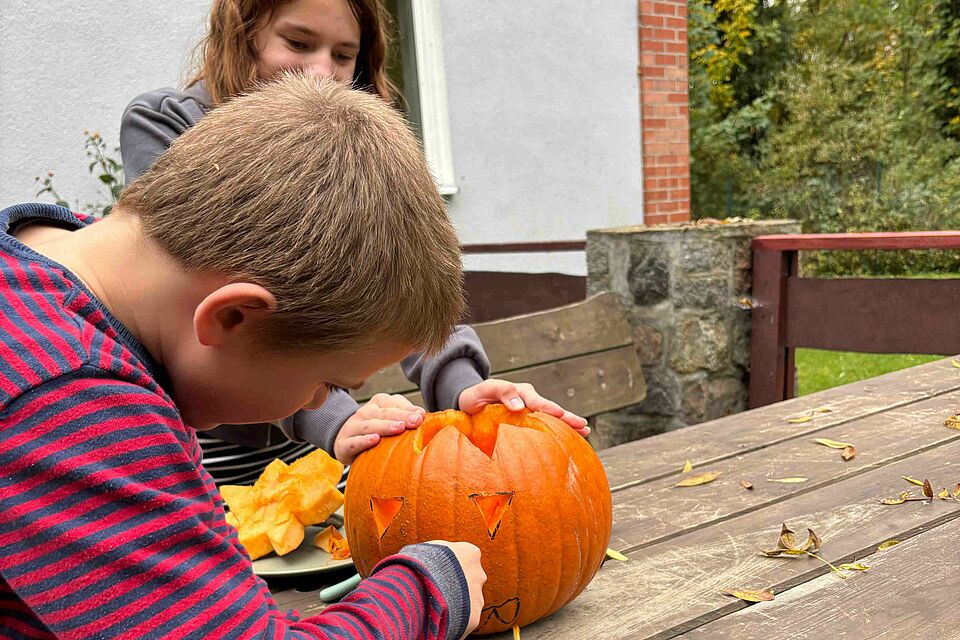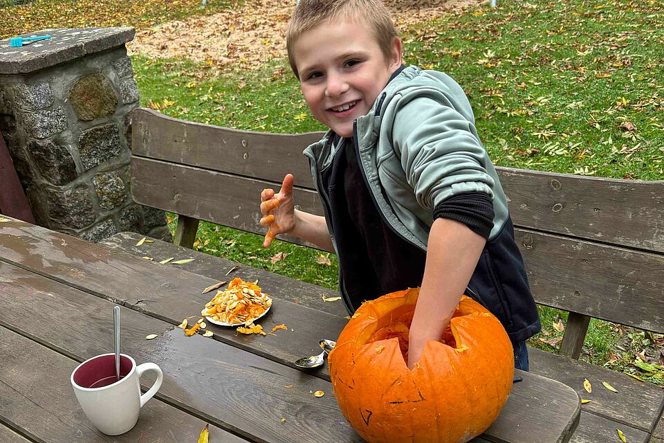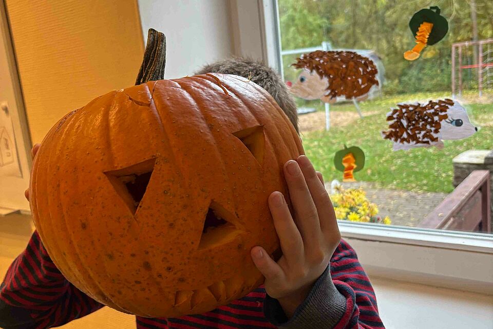 Wenn draußen die Blätter tanzen, zieht in unseren Räumen eine ganz besondere Stimmung ein. Gemeinsam mit den Kindern gestalten wir den Herbst – bunt, lebendig und voller Ideen. Beim Kürbisschnitzen entstehen nicht nur lustige Gesichter, sondern auch kleine Kunstwerke, auf die alle stolz sein können. Und während die Kürbiskerne im Ofen rösten, duftet es herrlich nach Herbst und Zuhause.