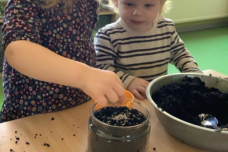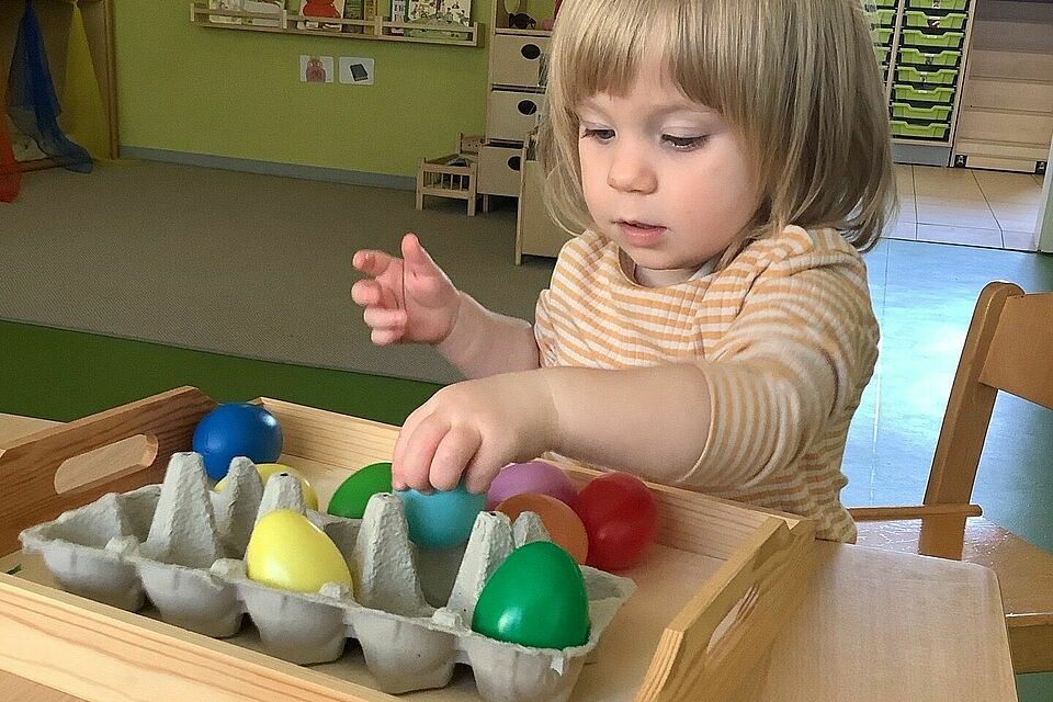Aber nicht nur drinnen blüht das Leben: Gemeinsam haben wir kleine Grassamen eingesät und mit wachen Augen verfolgt, wie aus winzigen Körnern grünes Leben sprießt. Auch unser Spielplatz hat eine fröhliche Verwandlung erfahren – bunte Eier verstecken sich zwischen Sträuchern und laden zu kleinen Entdeckungstouren ein. So lernen unsere Kinder spielerisch, die Veränderungen der Natur zu entdecken und ein Gefühl für Jahreszeiten zu entwickeln.