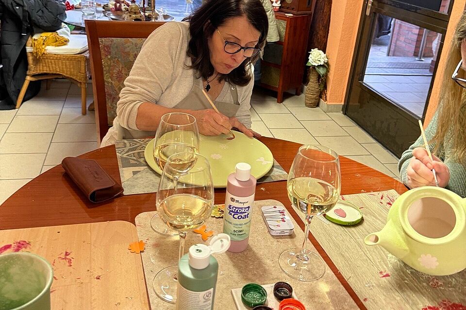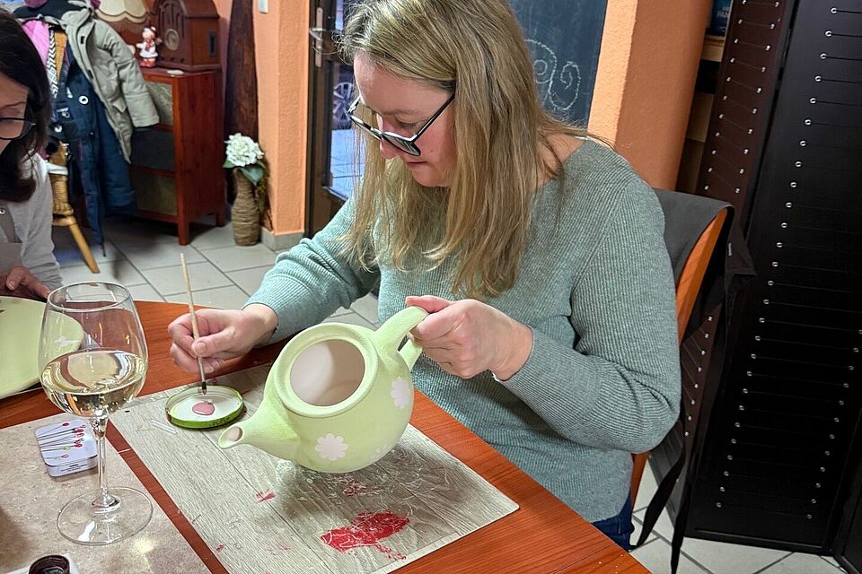 Die bemalten Stücke gehen nun auf ihre nächste Reise: Sie werden glasiert und gebrannt. Erst danach zeigen sich die Farben in ihrer ganzen Intensität. Die Vorfreude ist groß – denn jedes Teil bleibt ein echtes Unikat und ein Erinnerungsstück an einen wunderschönen kreativen Abend.