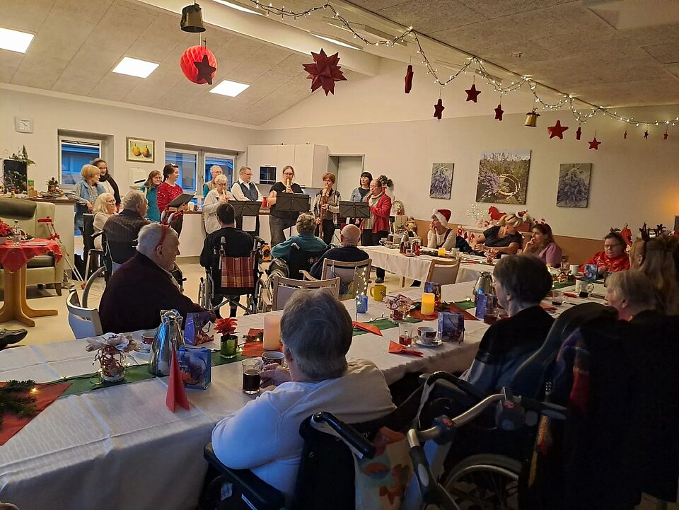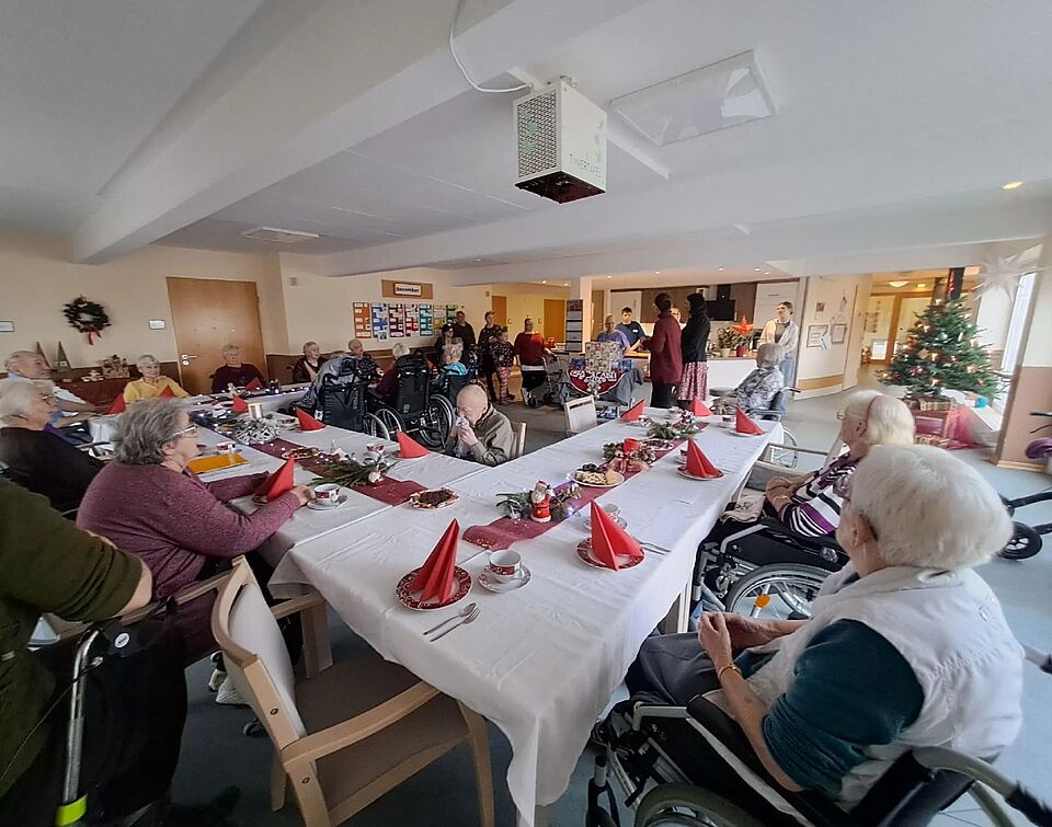 Mit viel Liebe zum Detail haben wir unsere diesjährige Weihnachtsfeier gestaltet – und wurden reich belohnt: Die Tische festlich gedeckt, der Kuchen frisch aus der hauseigenen Küche und die Stimmung rundum warm und wohltuend. Gemeinsam lauschten wir Gedichten, stimmten Weihnachtslieder an und ließen uns vom ökumenischen Chor verzaubern, der mit einem bunten Programm für leuchtende Augen und wippende Füße sorgte.