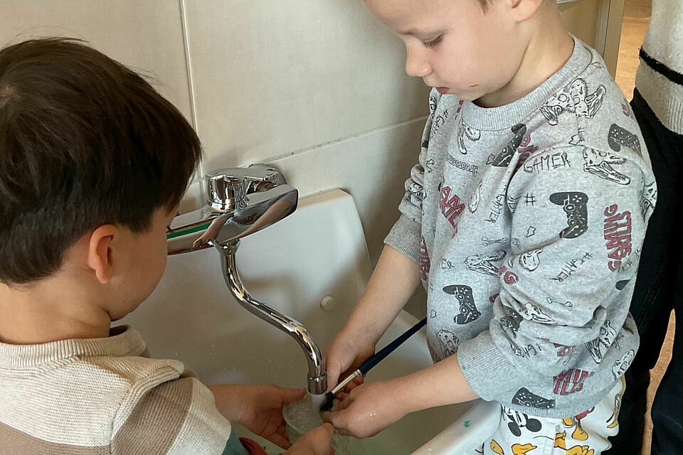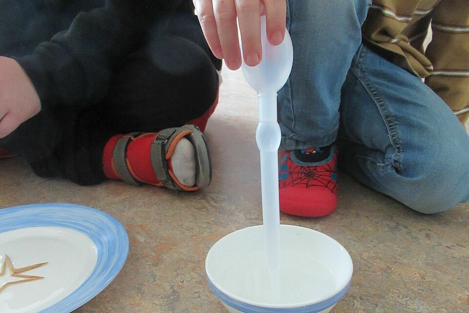 Zum Abschluss sorgte ein kleines Experiment für leuchtende Augen: Ein Stern aus Zahnstochern begann sich durch das Hinzufügen von Wasser wie von selbst zu bewegen. Ein Moment voller Staunen, der noch lange nachwirkte.