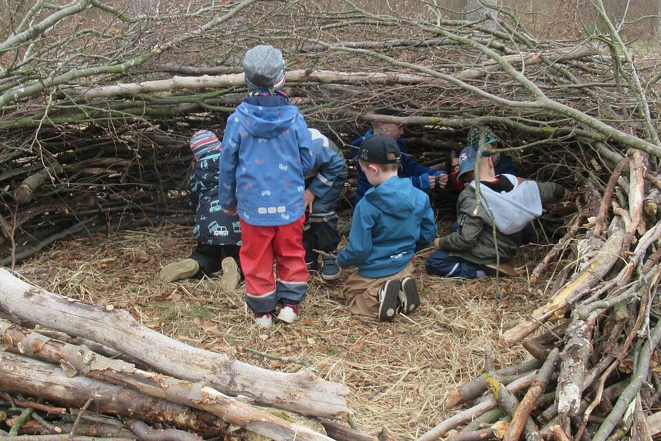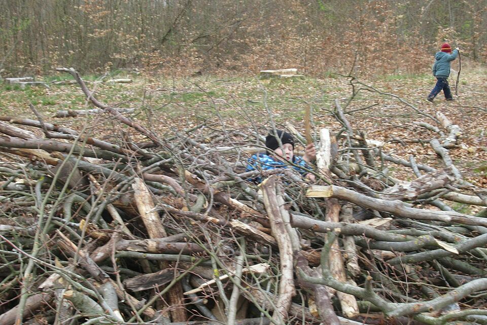 Der Waldtag brachte schließlich noch einmal eine ganz eigene Welt ins Spiel. Zwischen Bäumen und Ästen entstanden Höhlen und ein großes gemeinsames Nest. Die Kinder beobachteten, planten und arbeiteten zusammen – und erlebten dabei, wie wertvoll Teamarbeit ist.