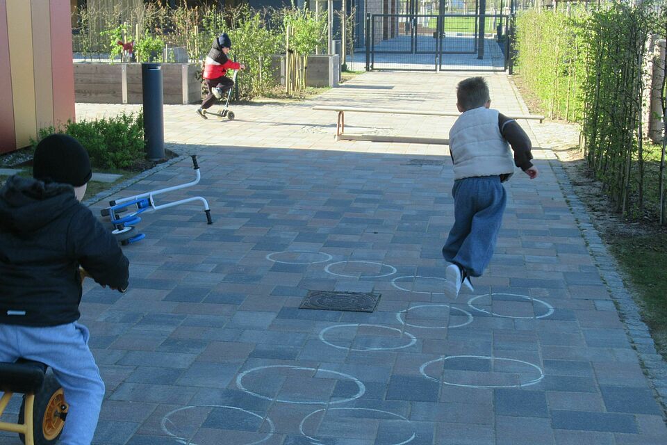 Draußen wartete Bewegung und Abenteuer. Ein Parcours lud zum Rennen, Springen und Balancieren ein. Immer wieder stellten sich die Kinder den kleinen Herausforderungen und wuchsen dabei über sich hinaus.
