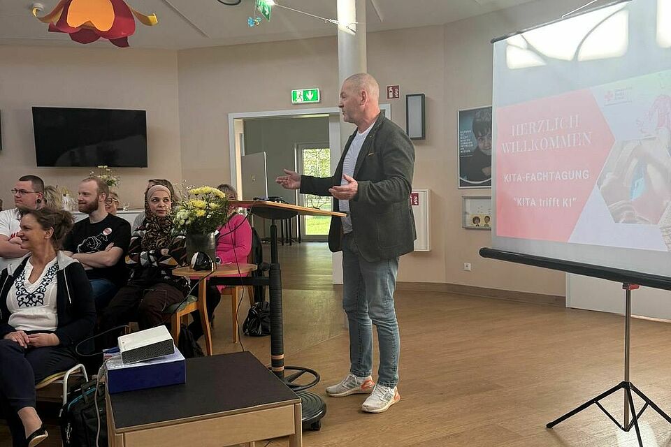 Der fachliche Höhepunkt folgte mit dem Vortrag von Herrn Jobst Höche zum Thema „KI trifft Kita“. Mit viel Praxisnähe, Klarheit und einer guten Portion Neugier zeigte er, wie Künstliche Intelligenz – insbesondere ChatGPT – den Kita-Alltag unterstützen kann. Ängste wurden abgebaut, Chancen greifbar gemacht und neue Perspektiven eröffnet.