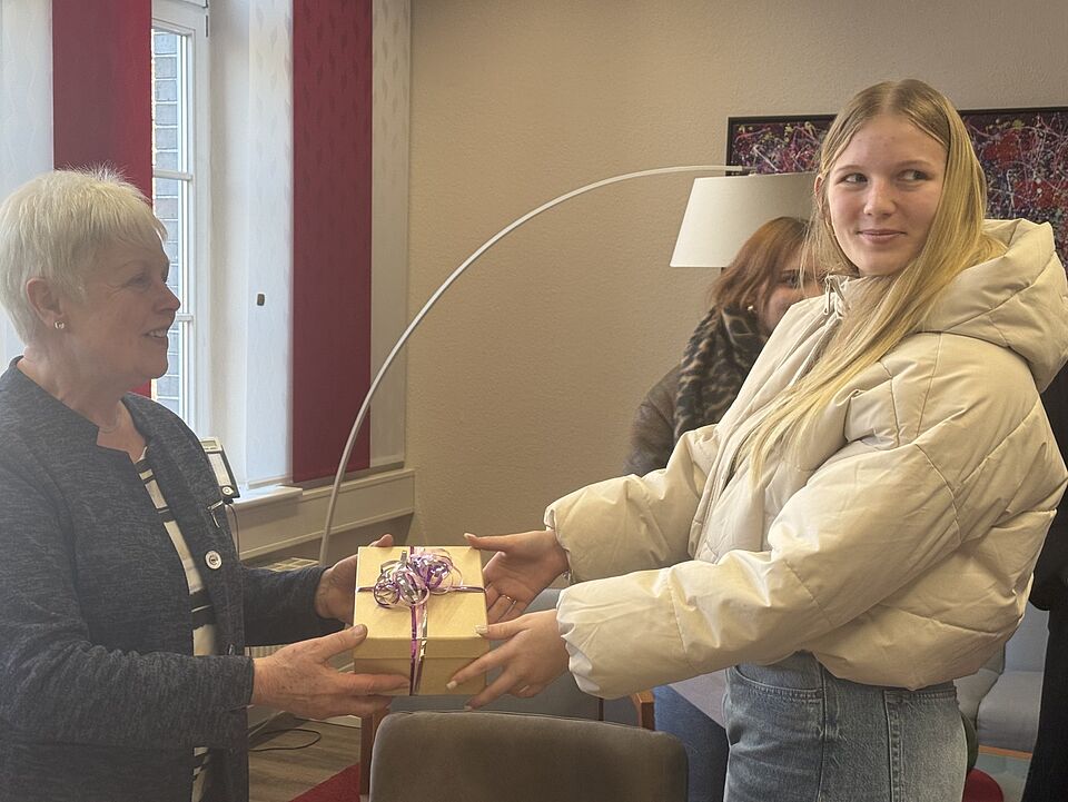 Mit einem symbolischen Scheck über 810 Euro unterstützten sechs Auszubildende im dritten Lehrjahr der Ausbildung zum/zur Kaufmann/Kauffrau für Büromanagement am 7. Januar den Förderverein des stationären DRK-Hospizes „Eldehaus“. Die Spendenübergabe fand in der Geschäftsstelle des DRK Kreisverband Parchim e.V. statt.