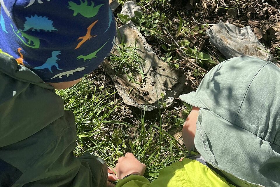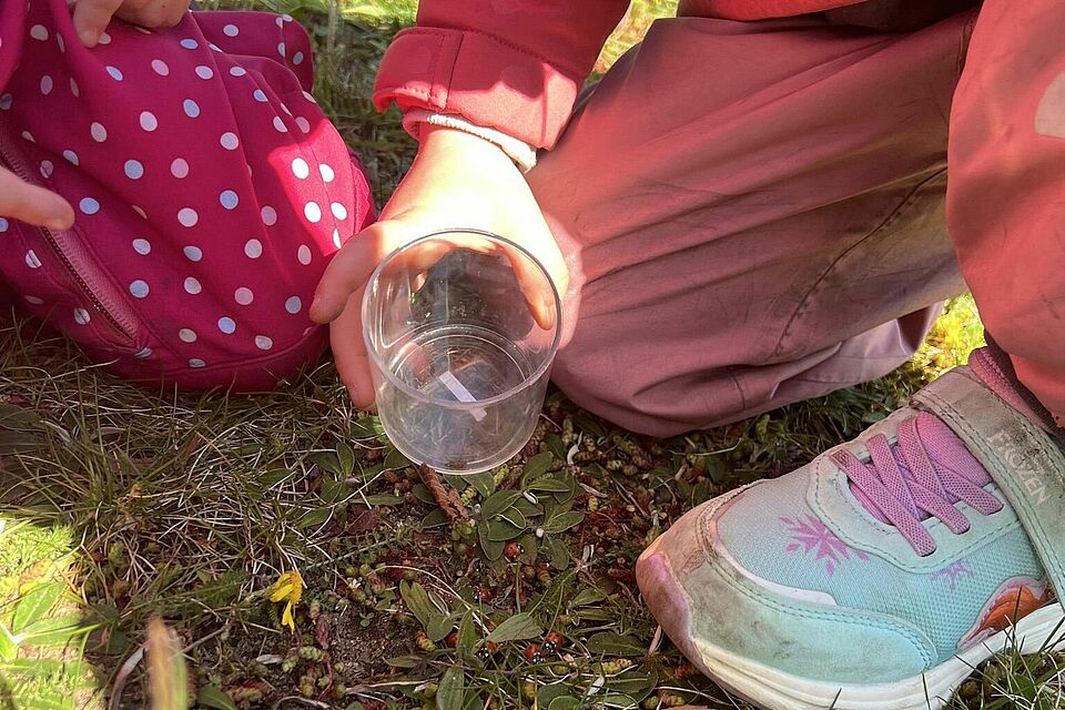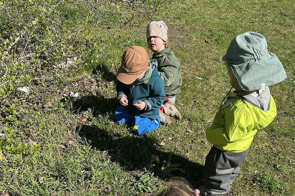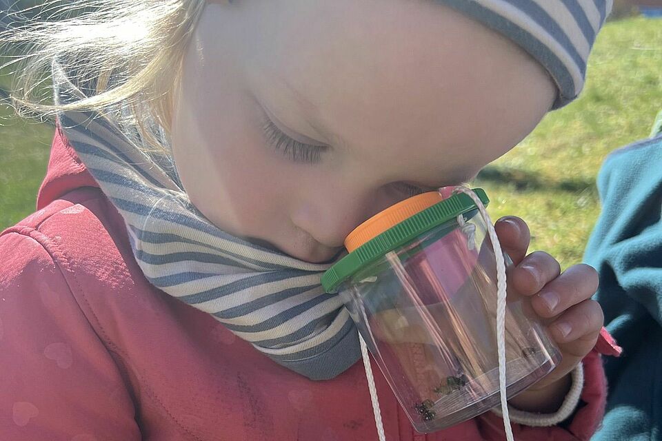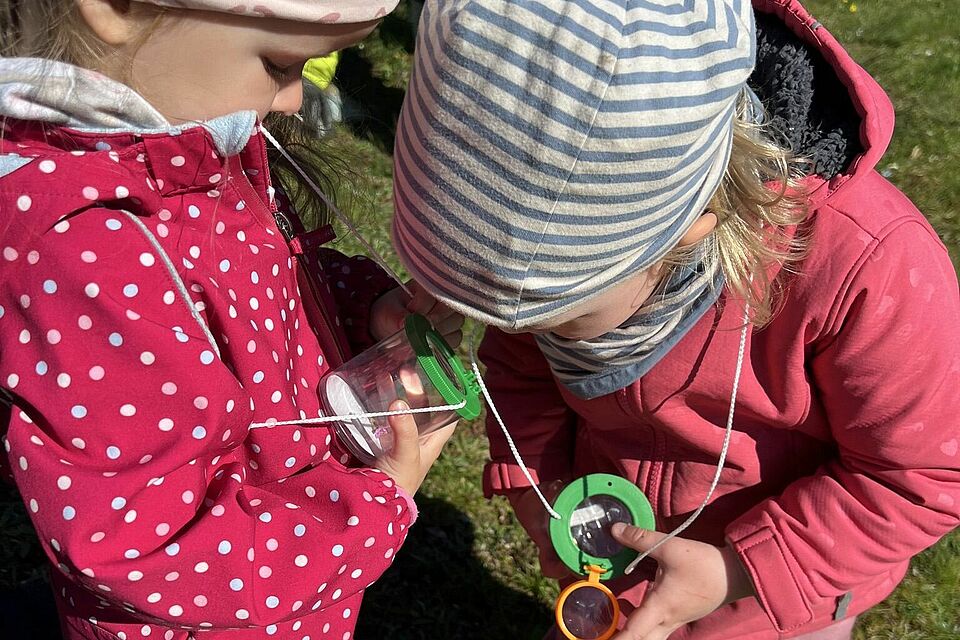 Auf den Feldern wurde es ruhiger, fast poetisch. Blumen wurden gesammelt, kleine Sträuße gebunden und Gedanken vielleicht schon an jemanden verschenkt. Später rückte die Neugier wieder in den Vordergrund: Mit Lupen wurde geschaut, geforscht und entdeckt. Zwischen Gräsern und unter Rinde offenbarte sich eine verborgene Welt, die Staunen und Fragen zugleich weckte.