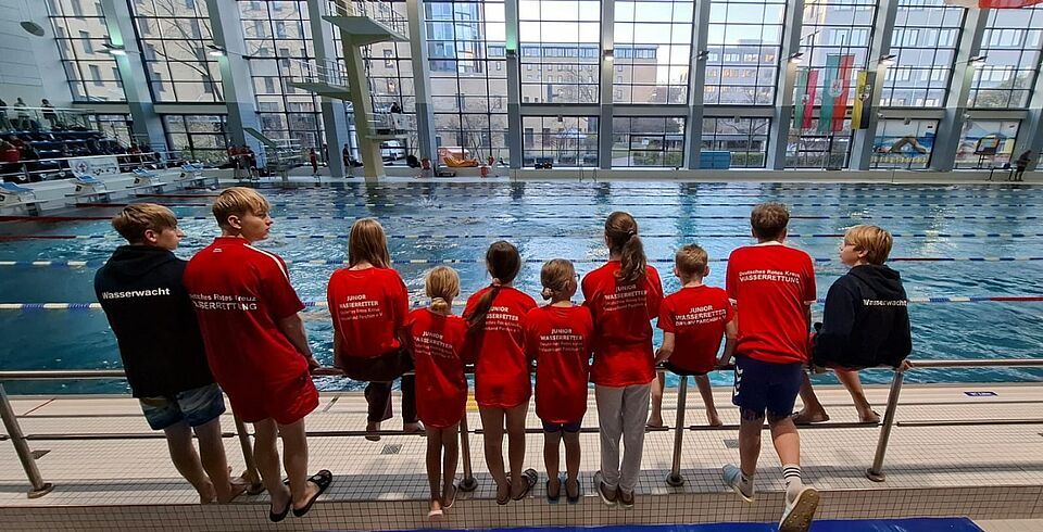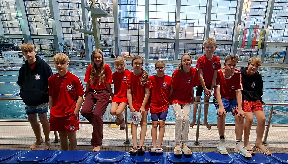 Schon beim Betreten der imposanten Elbschwimmhalle war klar: Das hier ist kein gewöhnlicher Wettkampf. Eine 50-Meter-Bahn statt der gewohnten 25 Meter, 21 weitere Mannschaften aus dem ganzen Land – und ein pralles Programm, das volle Konzentration forderte. Unsere Kinder und Jugendlichen zeigten bei drei anspruchsvollen Schwimmdisziplinen, im gezielten Rettungsballwerfen und bei kniffligen Theoriefragen, was in ihnen steckt. Ob Erste Hilfe, Rotkreuz-Wissen oder Natur- und Gewässerschutz: Unsere Juniorretter bewiesen, dass sie nicht nur körperlich fit, sondern auch geistig top vorbereitet sind.