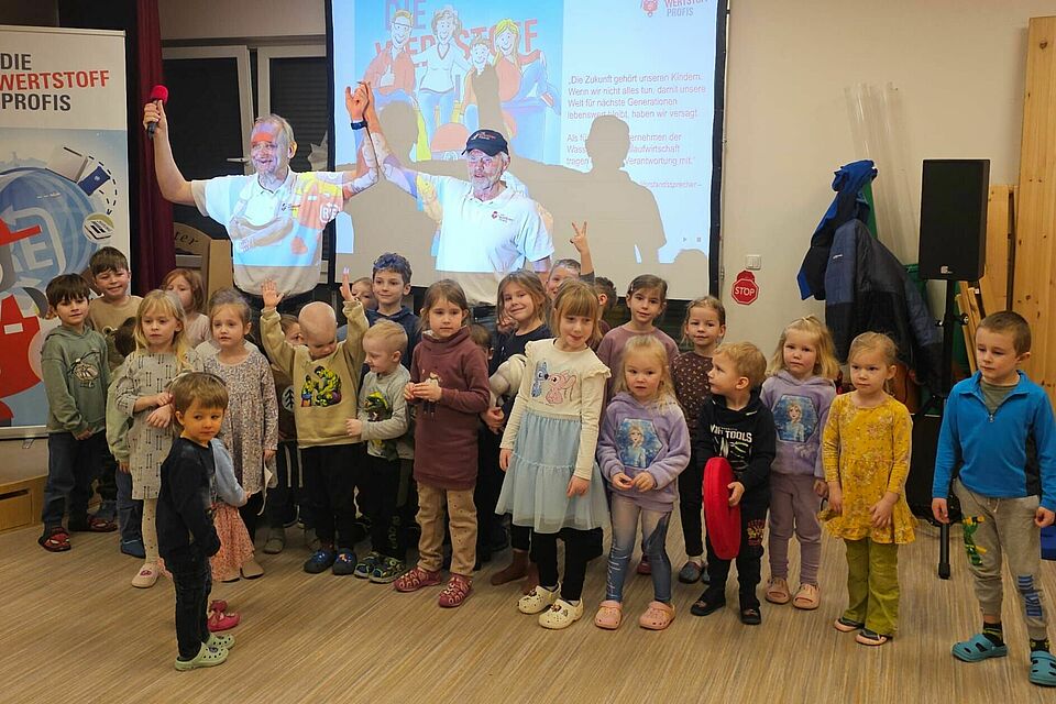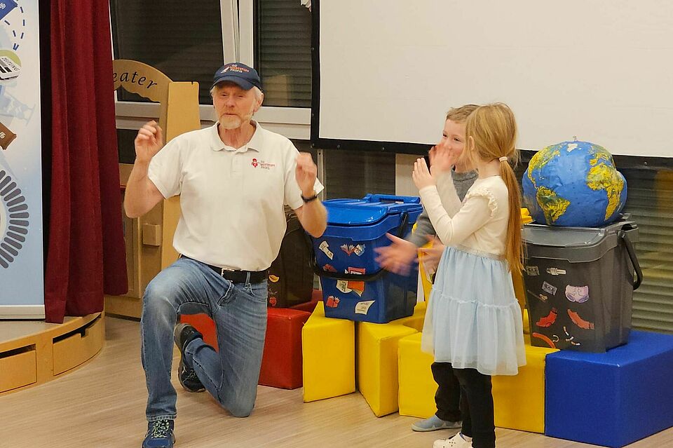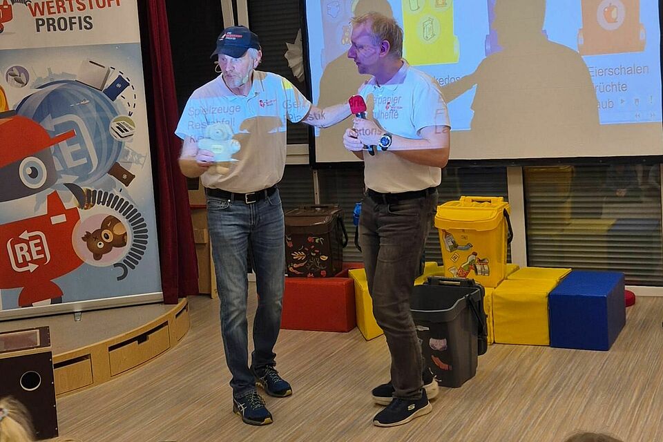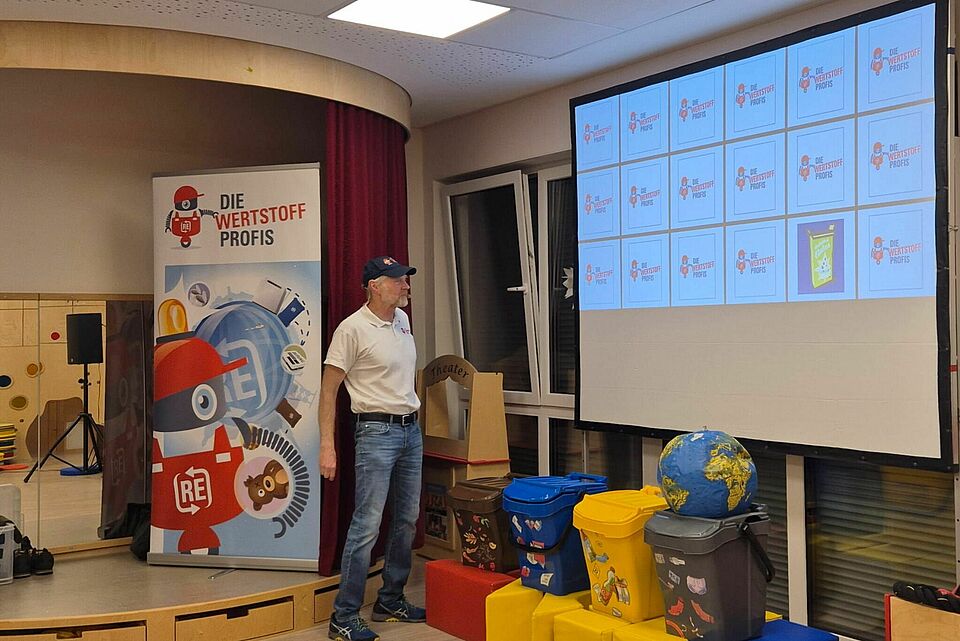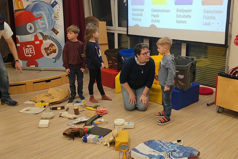 Rund 30 Kinder wurden einen Vormittag lang zu kleinen Recycling-Expert:innen. Zusammen mit den Moderatoren Jürgen, Friedhelm und dem virtuellen Roboter Robin sortierten sie Müll, spielten Memory und bauten mit Lego – immer mit viel Spaß und Eifer.