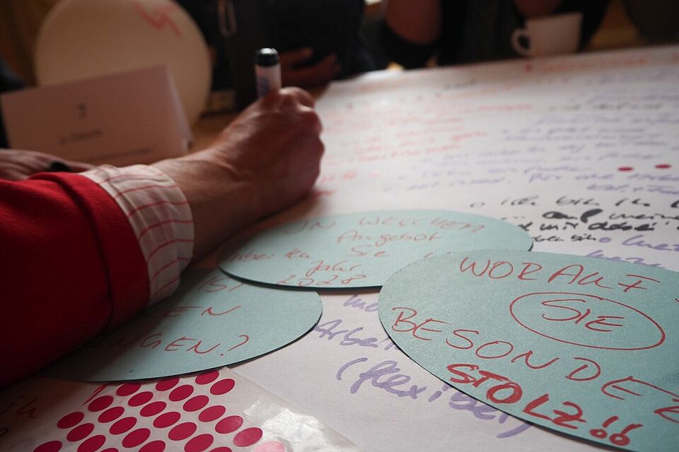 In einem strukturierten Workshop-Format arbeiteten die Teilnehmenden an sieben moderierten Tischen zu zentralen Themen: