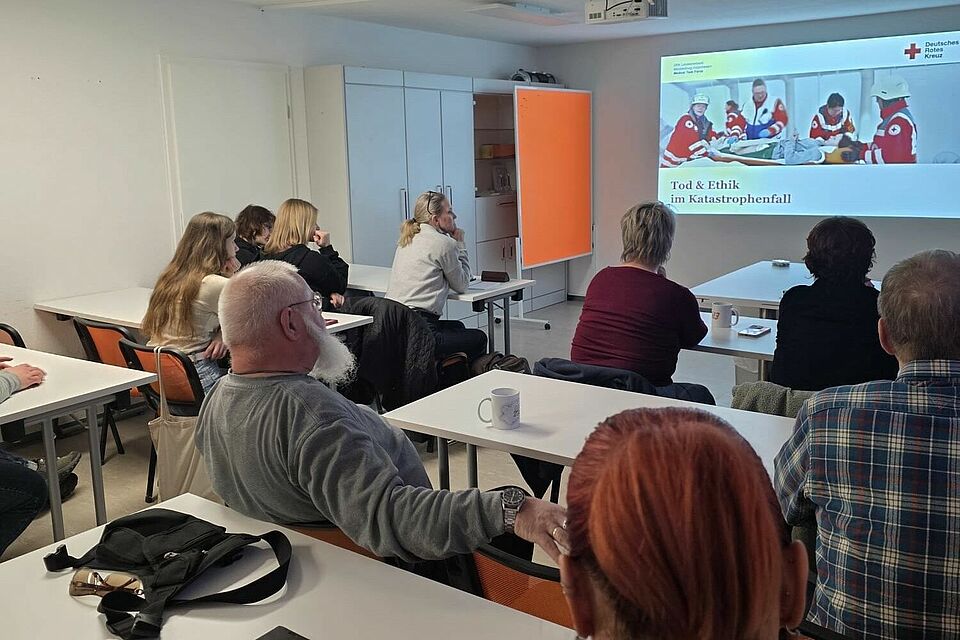 Am Standort Grevesmühlen trafen sich 15 ehrenamtliche Helferinnen und Helfer in unserer Unterkunft am Ploggensee, um sich intensiv mit ethischen Fragestellungen im Katastrophenfall zu beschäftigen. Neben medizinischem Fachwissen gehört auch die reflektierte Entscheidungsfindung zu den Herausforderungen, denen Einsatzkräfte in außergewöhnlichen Lagen begegnen können.