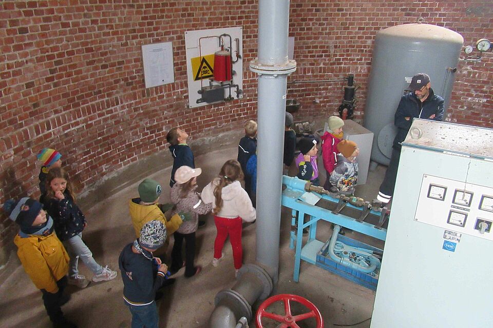 Sie öffneten einen echten Brunnen, erkundeten die Pumpanlage und beobachteten, wie Wasser gereinigt wird. Überall blitzten neugierige Augen, überall wurde gefragt, geschaut, gestaunt. Wir erleben immer wieder: Kinder lernen am besten, wenn sie selbst ausprobieren dürfen, anfassen können und die Welt mit allen Sinnen begreifen.