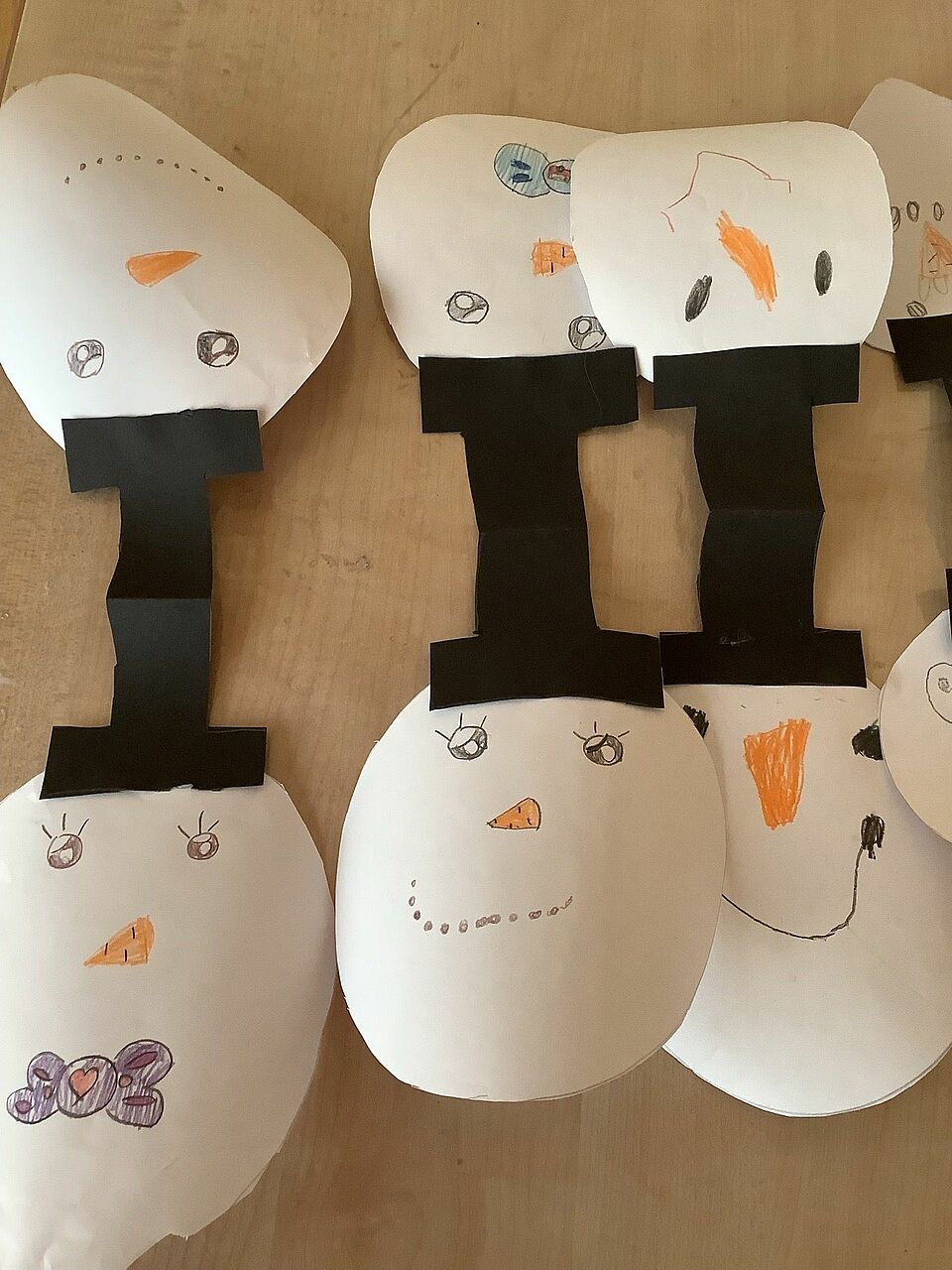 Mit viel Eifer und Ausdauer entstanden in dieser Zeit auch ganz besondere Kunstwerke: Schneemanngirlanden! Die Kinder schnitten, klebten und bastelten mit großer Begeisterung – bis schließlich viele kleine, winterliche Schneemänner fertig waren. Jetzt schmücken die Girlanden unsere Gruppenräume und verbreiten eine gemütlich-winterliche Stimmung bei den Stadtmusikanten.