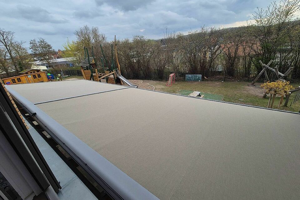 Mit der neuen Markise ist mehr entstanden als nur ein technisches Upgrade. Es ist ein Ort gewachsen, der unseren Alltag spürbar bereichert. Ein Platz, an dem Kinder ihre Welt erkunden können, während wir als Team einen Moment durchatmen und den Blick schweifen lassen – über kleine Bauwerke im Sand, über konzentrierte Spielideen und über fröhliche Begegnungen.