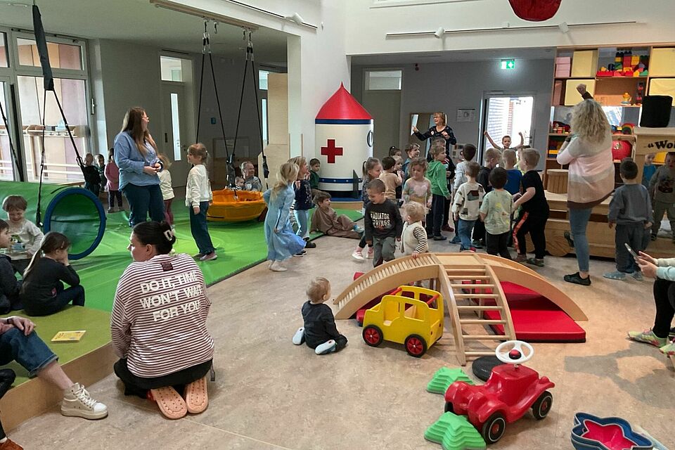 Andere kleine Entdecker:innen tauchten in der großen Stadtbibliothek in neue Geschichten ein, während im „Haus der Jugend“ Teamgeist und Koordination beim Ballspielen wuchsen. Im Wasserspielbereich experimentierten wiederum kleine Naturwissenschaftler:innen mit fließendem Wasser, um die Geheimnisse von Strömung und Bewegung zu erforschen. Passend zum bevorstehenden Osterfest entstanden im Bastelbereich fantasievolle Kunstwerke aus Kleister, Luftballons und Zeitungspapier, während im Bauraum Hasenhöhlen und kreative Konstruktionen Form annahmen.
