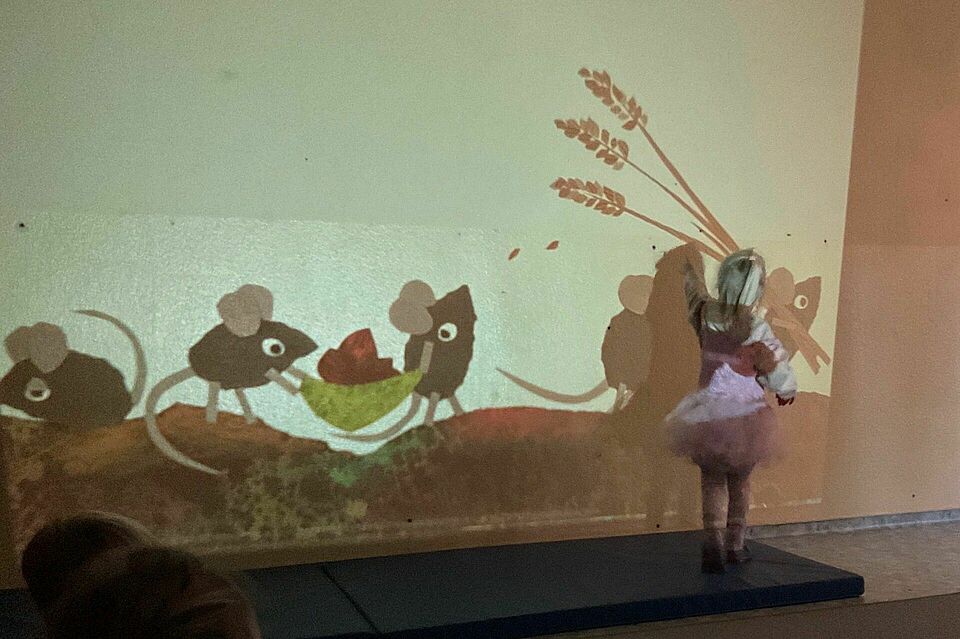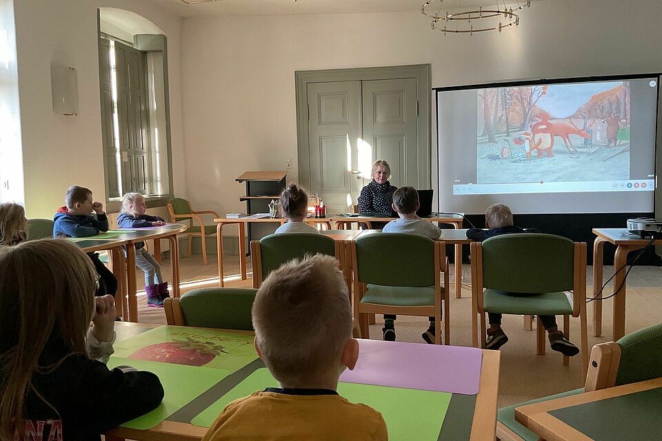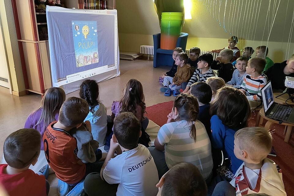 Die Kinder tauchten beim Bilderbuchkino in bunte Geschichtenwelten ein und entdeckten gemeinsam mit ihren Erzieherinnen und Erziehern spannende Abenteuer. Ein Besuch in der Bibliothek machte Lust, noch mehr Bücher zu entdecken!