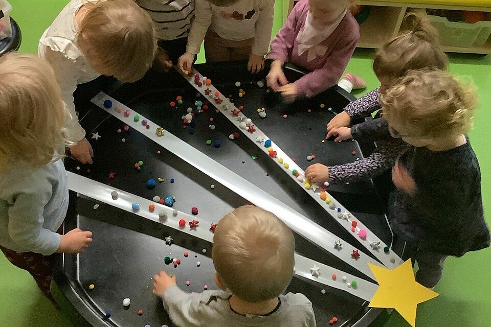 Es weihnachtet sehr – und das spüren wir überall. Beim Spielen und Experimentieren mit kinetischem Sand entstehen Sandplätzchen, Spuren und fantasievolle Formen. Gedrückt, geformt, verworfen und neu gedacht – jedes Kind findet seinen eigenen Weg. Wir schauen zu, lassen laufen und freuen uns über die vielen Ideen, die dabei ganz von selbst wachsen.