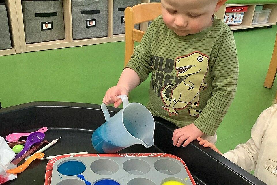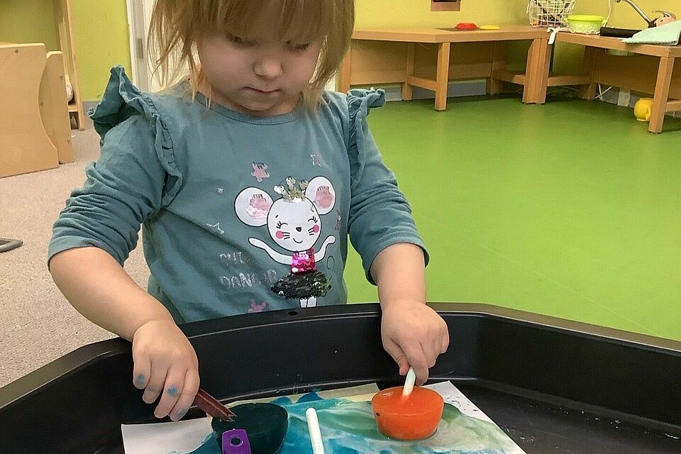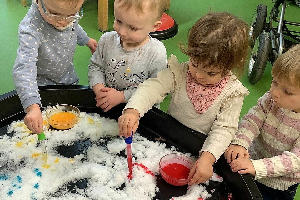 Wir nutzen die frostigen Temperaturen und gießen gemeinsam farbig angemischte Flüssigkeiten in Muffinformen. Ab in den Gefrierschrank – und am nächsten Tag wird aus den kleinen Eisblöcken eine wunderbare Leinwand zum Bemalen. Die Kinder staunen, experimentieren und entdecken spielerisch, wie Kälte und Farbe miteinander reagieren.