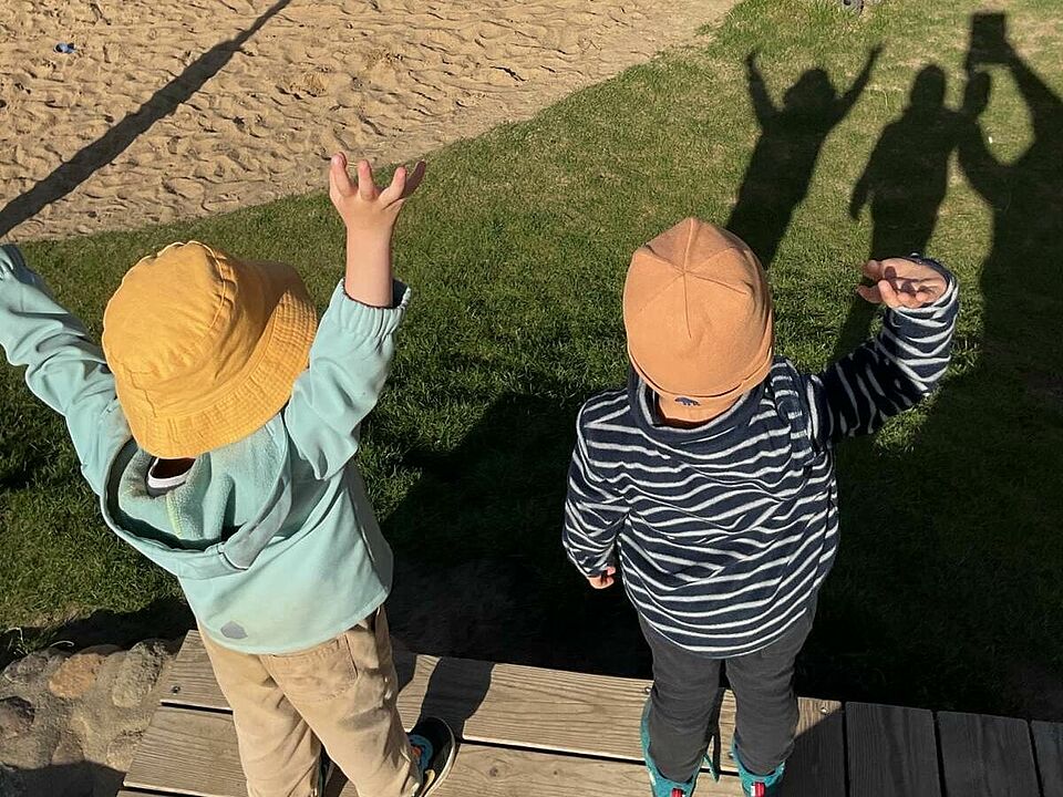 Und dann kam die Sonne ins Spiel! Durch die herbstlichen Sonnenstrahlen entdeckten einige Kinder das faszinierende Spiel von Licht und Schatten. Sie beobachteten, wie sich Schatten verändern, mal länger oder kürzer werden oder gar ganz verschwinden. Diese Erfahrung hat ihren Forschergeist ordentlich gekitzelt: Wie entsteht ein Schatten? Warum ist er manchmal so lang? Fragen über Fragen, die wir gemeinsam erforschten.