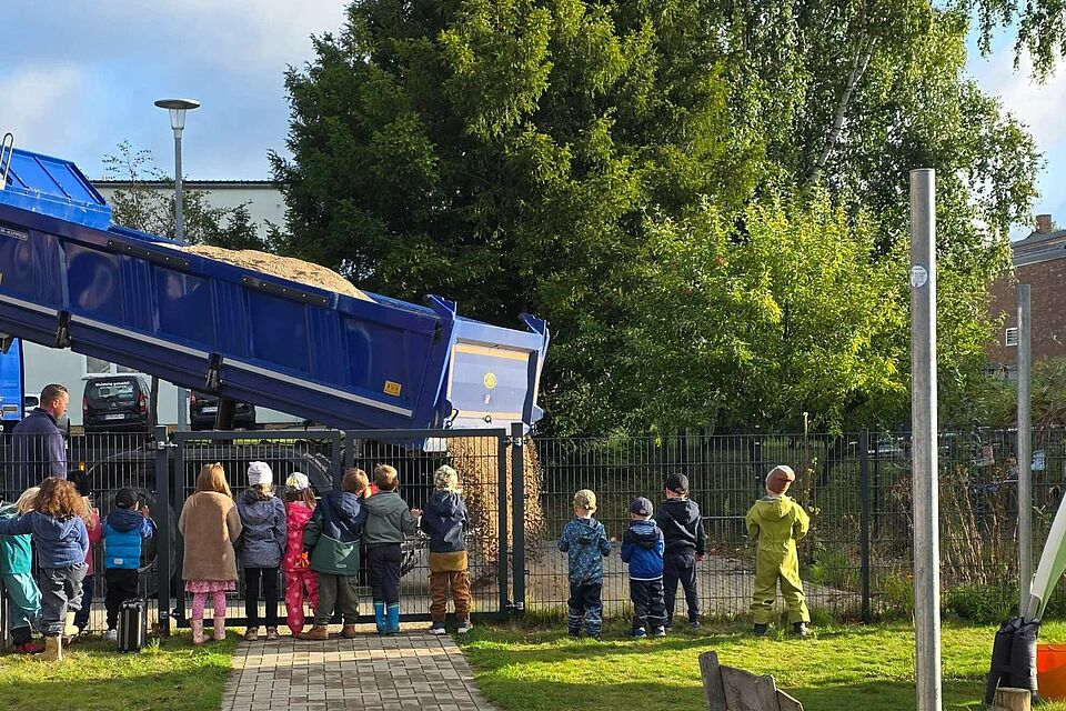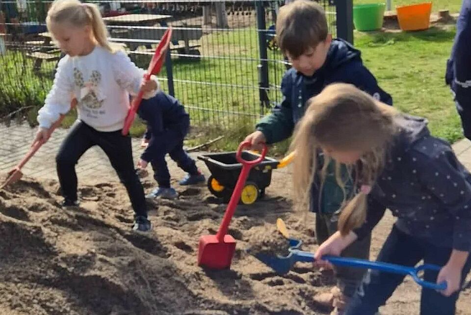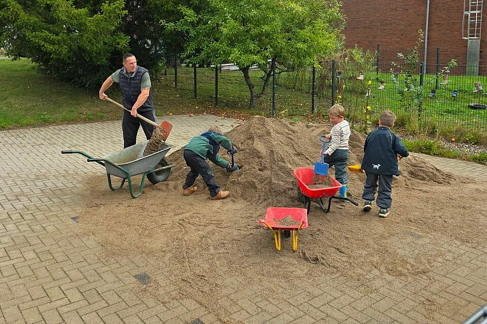 Ein Berg so groß wie ein kleines Gebirge türmte sich auf dem Hof. Für Erwachsene ein Haufen Arbeit – für Kinder eine Einladung zum Abenteuer. Mit Schubkarre, Schaufeln und unerschütterlichem Tatendrang machten sie sich ans Werk. Schaufel für Schaufel schrumpfte der Berg, während das Lachen der Kinder wuchs. Gemeinsam mit unserem Hausmeister verwandelten sie schwere Arbeit in ein Spiel voller Fantasie: mal war der Sand eine Schatzkiste, mal ein Vulkanausbruch, mal einfach nur der Stoff, aus dem Burgen gebaut werden.