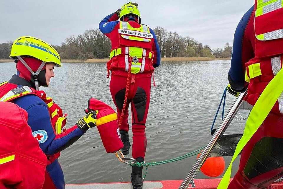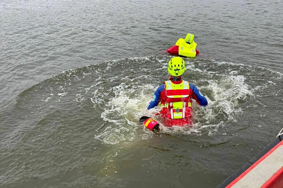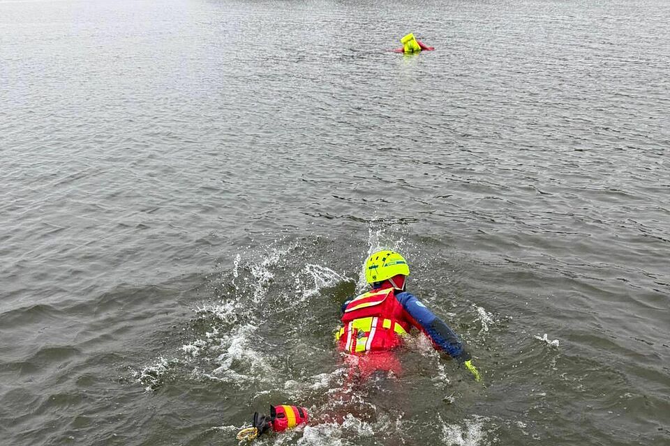 Besonders fordernd war das Team-Schwimmen über 500 Meter, bei dem eine gesicherte Person auf dem Spineboard im Schlepptau mitgeführt werden musste. Ergänzt wurde das Ganze durch einsatztaktische Übungen, bei denen Kräfte per Leine direkt ins Einsatzgebiet gebracht wurden.