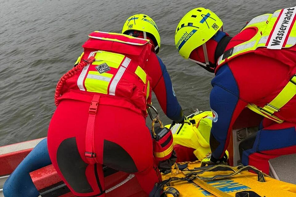Im Mittelpunkt standen realitätsnahe Einsatzszenarien direkt auf dem Wasser: Vom Mann-über-Bord-Manöver mit Fixierung auf dem Spineboard über den Patienten-Transfer ins Boot per Seitentür und Bugklappe bis hin zum Einsatz des Spineboards als improvisierte „Personenrutsche“. Auch das Boarding unter erschwerten Bedingungen sowie das Überwinden hoher Bordkanten gehörten zum anspruchsvollen Training.