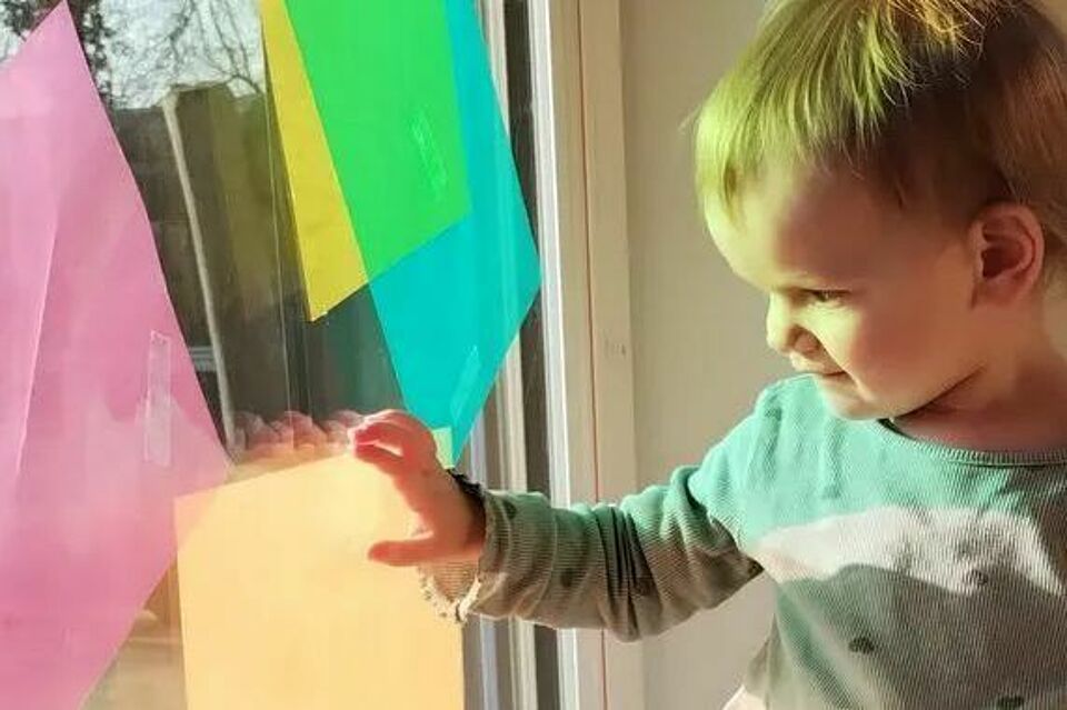 Mit durchsichtigen Farbenfolien in den Händen starteten die Kinder ihr Experiment. Sofort war die Neugier geweckt: Jede Folie wurde ans Licht gehalten, durchs Fenster geschaut und immer wieder ausprobiert. Staunende Augen folgten den Veränderungen ihrer gewohnten Umgebung – plötzlich wurde alles anders, alles leuchtend bunt. Es war ein echtes Fest für die Sinne: Hände versuchten die farbigen Lichtflecken zu fangen, Füße tanzten über bunte Schatten, und das Lachen erfüllte den Raum. Dabei haben die Kinder ganz nebenbei entdeckt, wie Licht die Farben verändert, und ihre Beobachtungsfreude und Ausdauer spielerisch gestärkt.