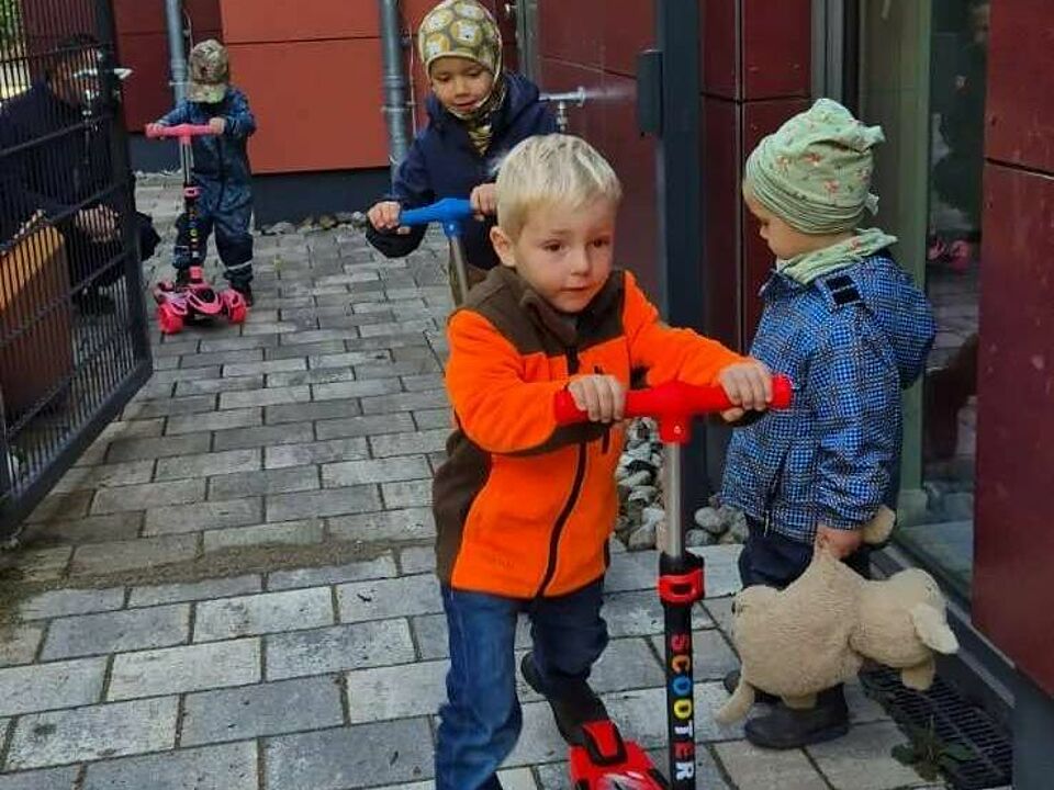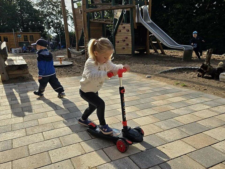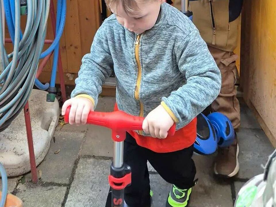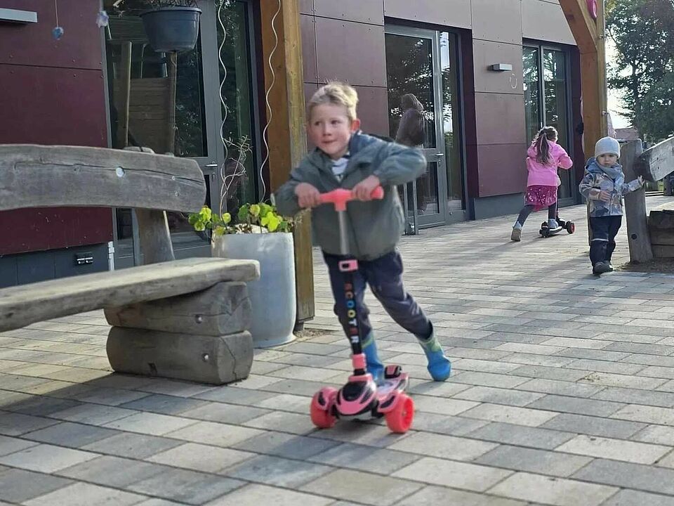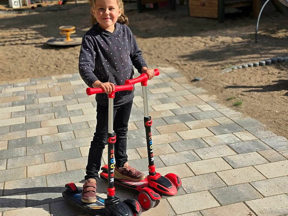 Mit leuchtenden Augen und aufgeregtem Kichern erkunden die Kinder die Roller in allen Facetten. Mal vorsichtig, mal mutig, mal im Wettstreit – jeder Schwung ist ein Moment des Ausprobierens und Entdeckens. Bewegung macht Spaß und stärkt gleichzeitig Motorik, Balance und Selbstvertrauen.