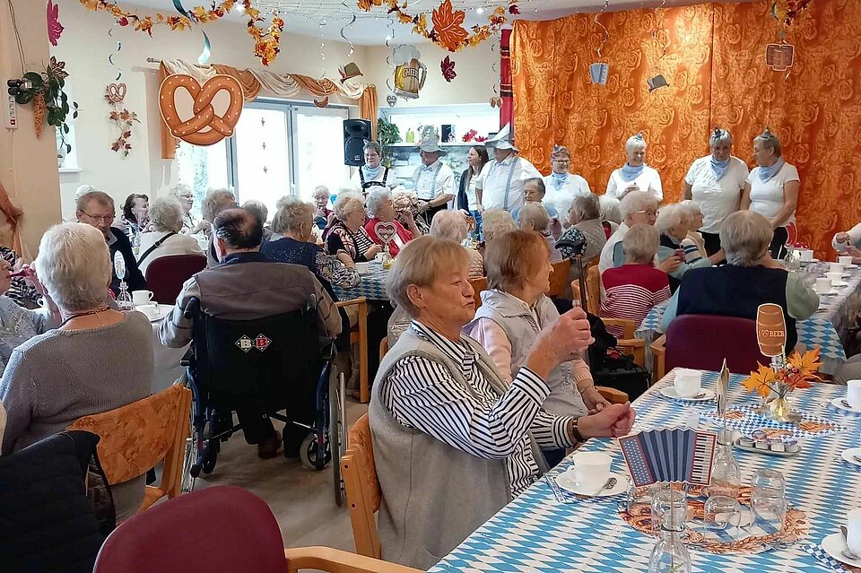 Wir haben die Tische mit frischen Brezeln, leckeren Dips und spritziger Bowle gedeckt – und schon war die Stimmung da! Das Programm hatte für jeden etwas: das Zwergentheater brachte alle zum Schmunzeln, Gospelgesänge stimmten uns fröhlich ein und Jürgen Drews sowie die Brüeler Blasmusik sorgten für tanzbare Höhepunkte.
