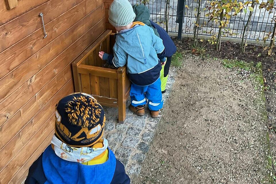 Regenjacken an, Kapuzen hoch, Gummistiefel festgezurrt – schon wurde der graue Himmel zum spannenden Bühnenbild für kleine Entdecker:innen. Mit leuchtenden Augen stapften unsere Krippenkinder durch Pfützen, ließen Wassertropfen auf ihren Händen tanzen und entdeckten, wie das Wasser auf Blättern glitzert. Jeder Schritt klang anders, jedes Plätschern erzählte eine kleine Geschichte. Wir lieben solche Momente, denn draußen zu forschen heißt: die Welt mit allen Sinnen zu begreifen – wortwörtlich.