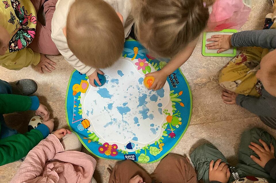 Während draußen die Tropfen klopften, verwandelte sich der Gruppenraum in eine kleine Werkstatt der Fantasie. Mit bunten Magneten und Bausteinen entstanden Bauwerke – hoch, schief, kreativ und voller Stolz. Auf der Aqua Doodle Matte entstanden wahre Kunstwerke: Wasser wurde zu Farbe, Stempel zu Pinseln, kleine Hände zu großen Künstlerinnen. Und als ob das nicht genug wäre, wurden mit Rohren ganze Tunnelsysteme gebaut – mal geheimnisvoll, mal einfach nur wunderbar verrückt.