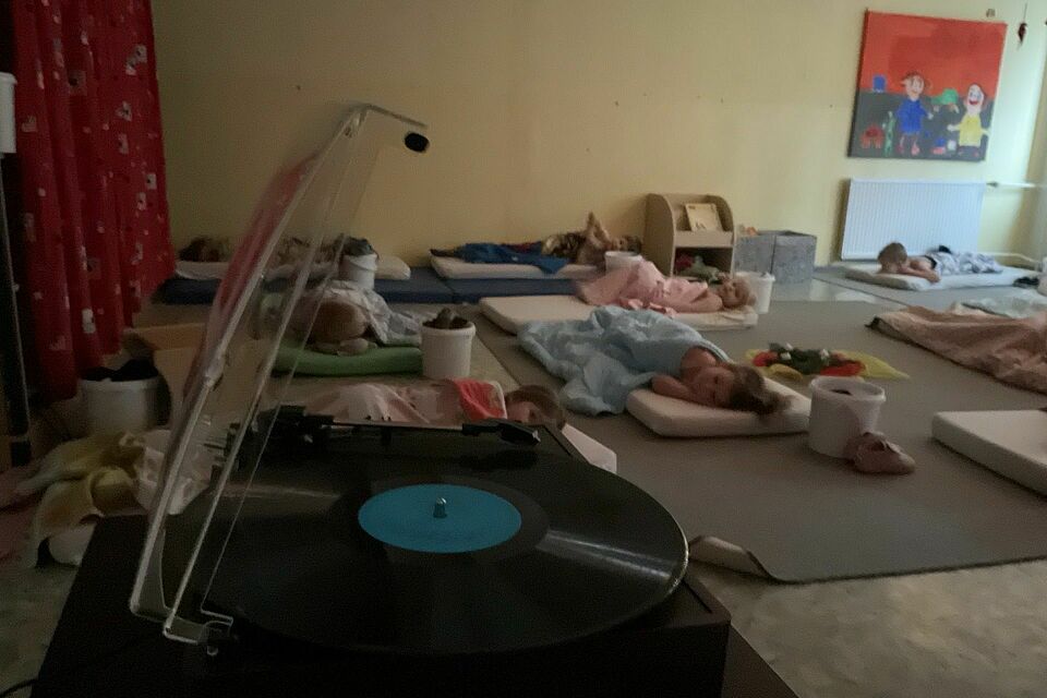 Bei uns trifft alt auf jung – und das ganz lebendig. Der Schallplattenspieler ist ein echter Schatz aus vergangenen Zeiten, der die Kinder sofort in seinen Bann zieht. Schon beim ersten Knistern huschen neugierige Blicke über die Platte, kleine Hände legen sie vorsichtig auf und die Nadel tanzt über die Rillen. Manche wippen im Takt, andere schließen die Augen und lassen die Musik wirken – und immer wieder hört man ein leises Staunen, ein Auflachen oder ein leises „Noch einmal!“. Ob beim freien Spiel oder in der Ruhephase, die Kinder entdecken, wie Töne entstehen, wie Musik bewegt und Geschichten erzählt, und wie spannend es ist, neue Klänge zu erforschen.