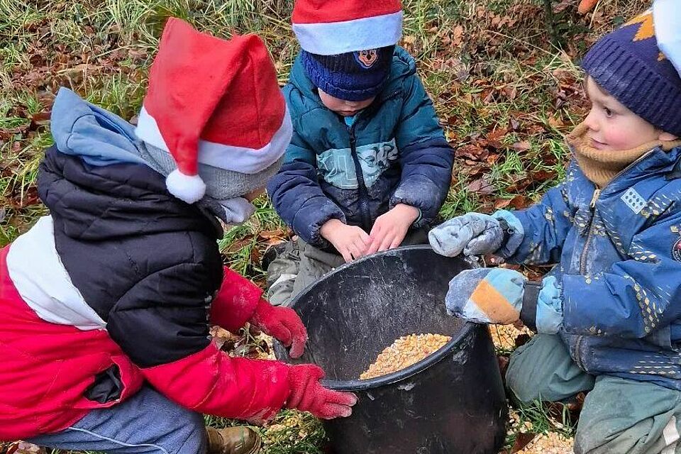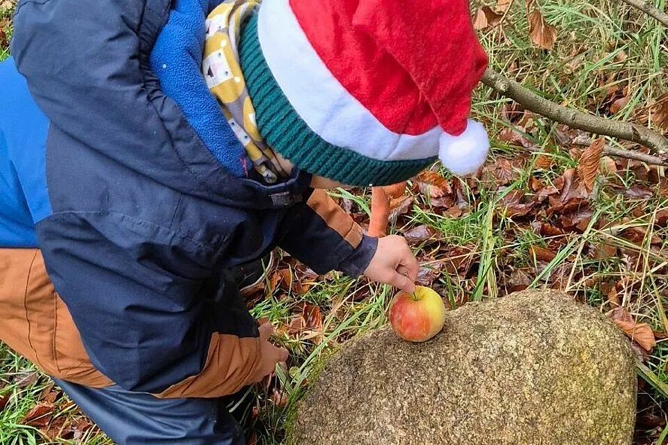 Wir stapften durch den Wald, suchten Tierspuren, pflanzten Schwarznüsse und genossen den duftenden Apfelpunsch, der uns von innen wärmte. Überall gab es etwas zu entdecken: kleine Spuren im Schnee, raschelndes Laub und die Freude, Neues gemeinsam zu erforschen. Jeder Moment war ein kleines Abenteuer für unsere Entdecker:innen.