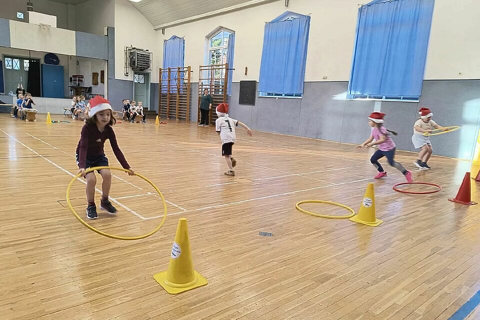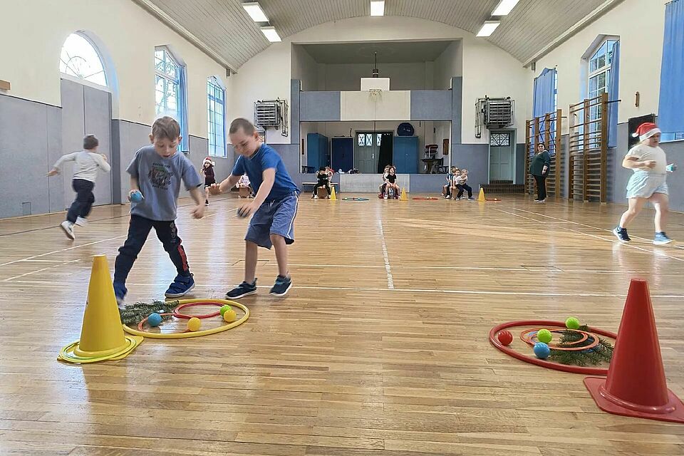 Heute durften unsere Eichhörnchenkinder etwas ganz Besonderes erleben: Unter dem Motto „Sportfrei“ überraschte sie eine aktive Aktion in ihrem Adventskalender. Gemeinsam starteten wir ein weihnachtliches Staffelspiel, bei dem es nicht nur um Geschwindigkeit, sondern vor allem um Teamgeist und Ausdauer ging.