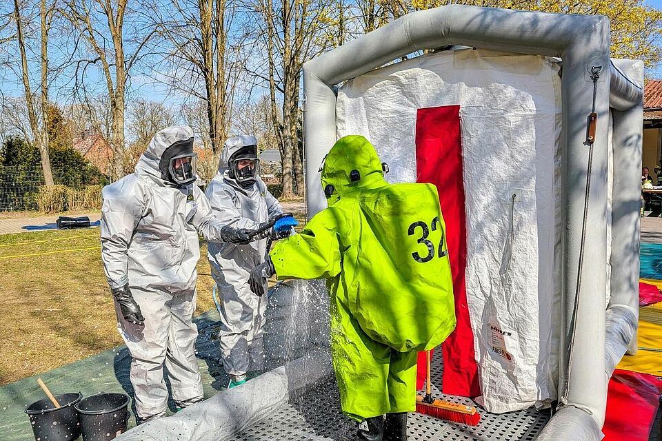 Bei einer groß angelegten Einsatzübung an der Regionalschule in Lübz wurde ein Chemieunfall während des Unterrichts simuliert. Insgesamt fünf Kinder galten als verletzt, während sich gleichzeitig ein Gefahrstofflagebild entwickelte, das ein koordiniertes und strukturiertes Vorgehen zwingend erforderte. Rund 80 Einsatzkräfte aus dem Gefahrgutzug des Landkreises Ludwigslust-Parchim (Bereich Ost) sowie dem erweiterten Löschzug standen vor der Aufgabe, die Lage unter realistischen Bedingungen zu bewältigen.